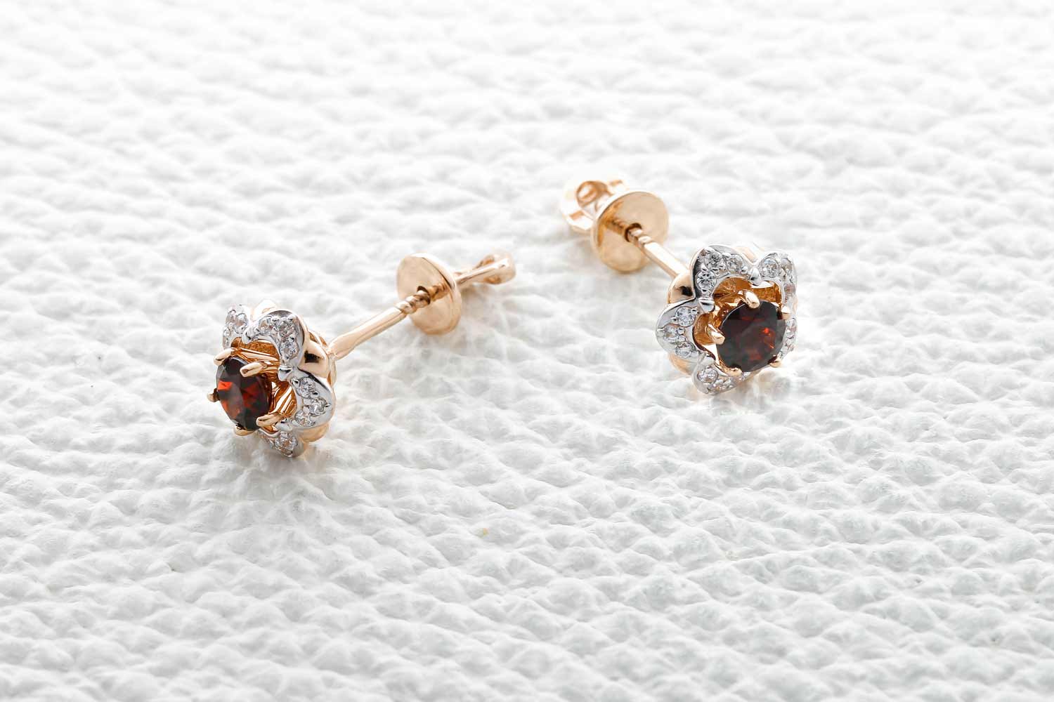 Гранат натуральный, количество 2 шт., огранка круг, размер 4 мм ; Фианит б/цв, количество 30 шт., огранка круг, размер 1 мм