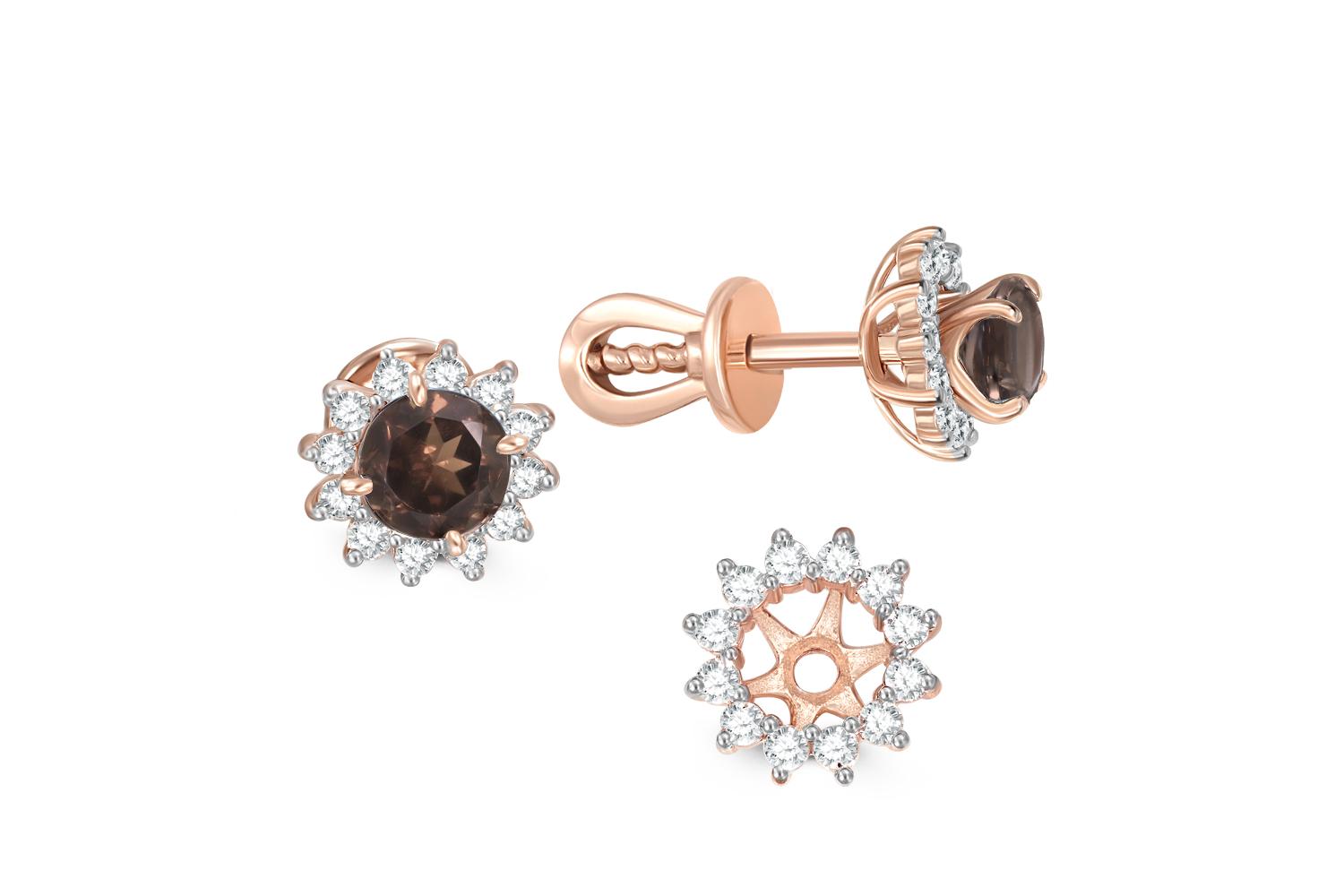 Раухтопаз натуральный, количество 2 шт., огранка круг, размер 4 мм ; Фианит б/цв, количество 24 шт., огранка круг, размер 1,2 мм