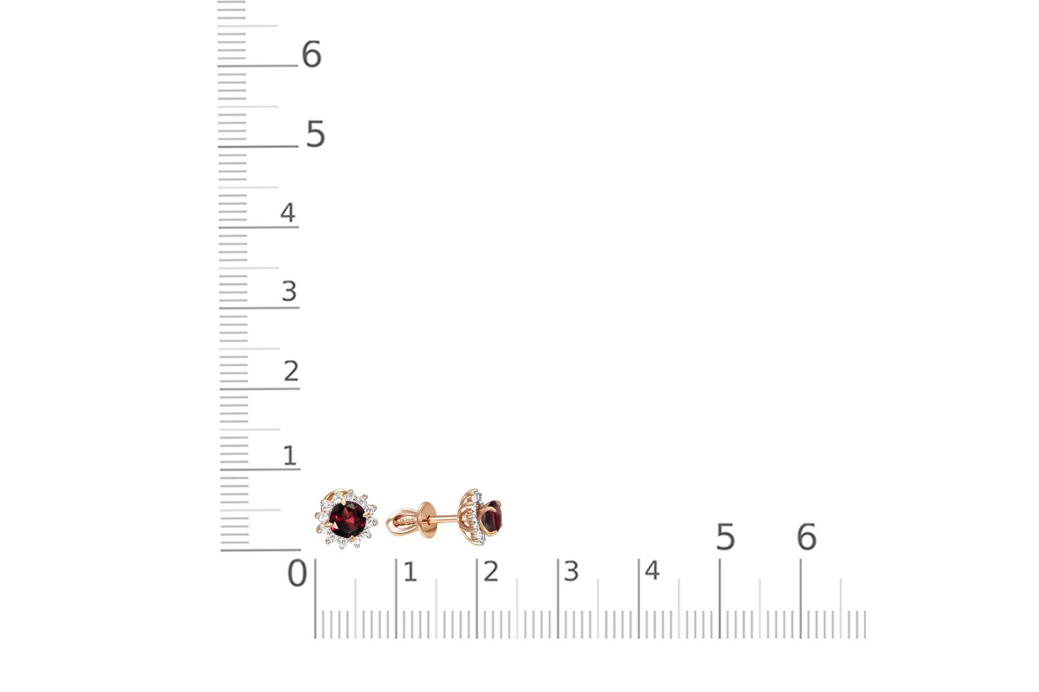 Гранат натуральный, количество 2 шт., огранка круг, размер 4 мм ; Фианит б/цв, количество 24 шт., огранка круг, размер 1,2 мм