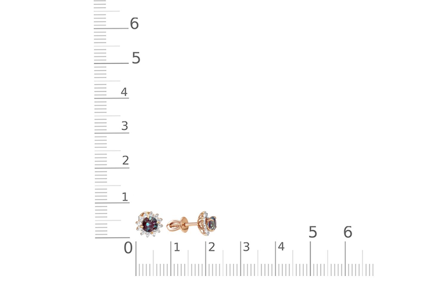 Александрит Гт искусственный, количество 2 шт., огранка круг, размер 4 мм ; Фианит б/цв, количество 24 шт., огранка круг, размер 1,2 мм
