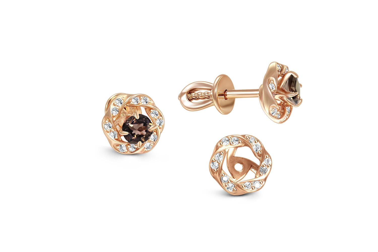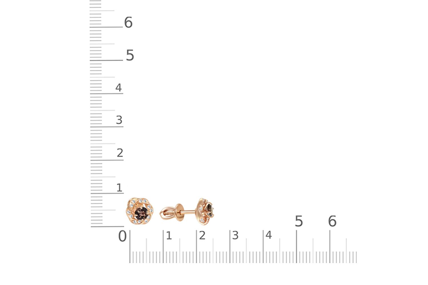 Раухтопаз натуральный, количество 2 шт., огранка круг, размер 4 мм ; Фианит б/цв, количество 24 шт., огранка круг, размер 1 мм