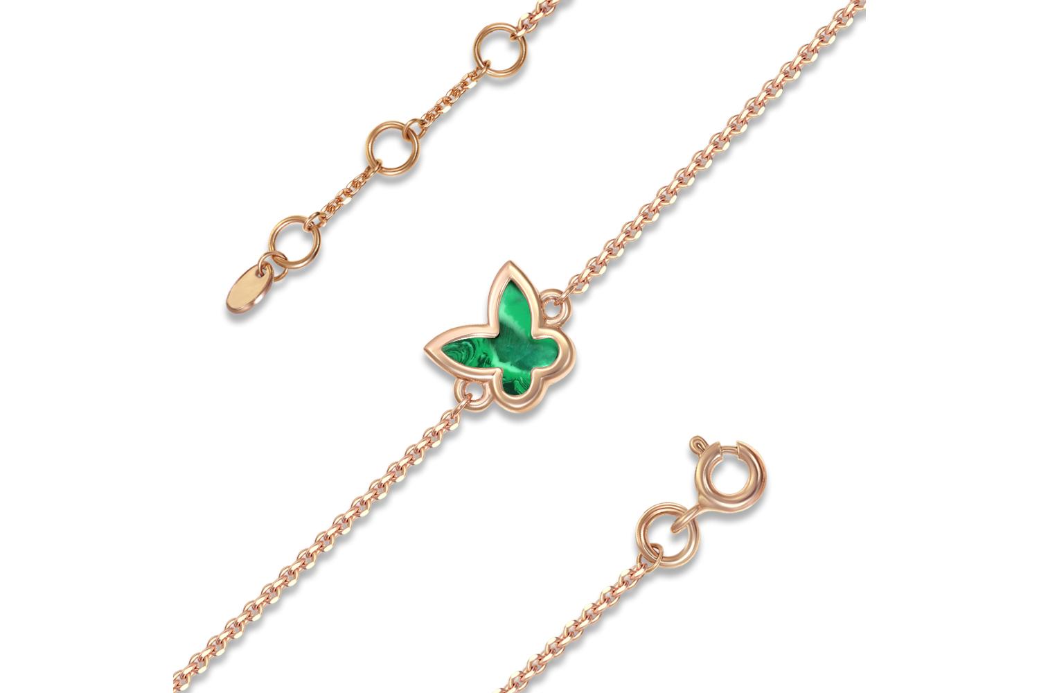 Мастера компании NEWGOLD, приложив всё свое мастерство и искусство, создали для Вас на нашем собственном производстве Браслет детский с бабочкой с малахитом из красного золота.