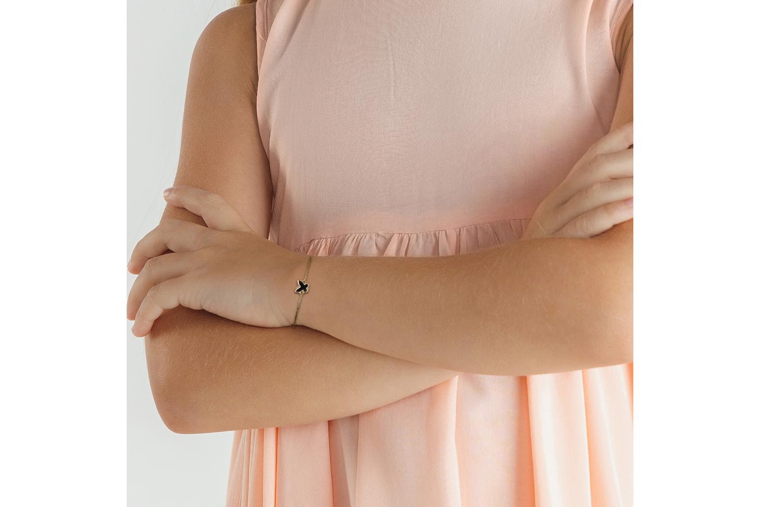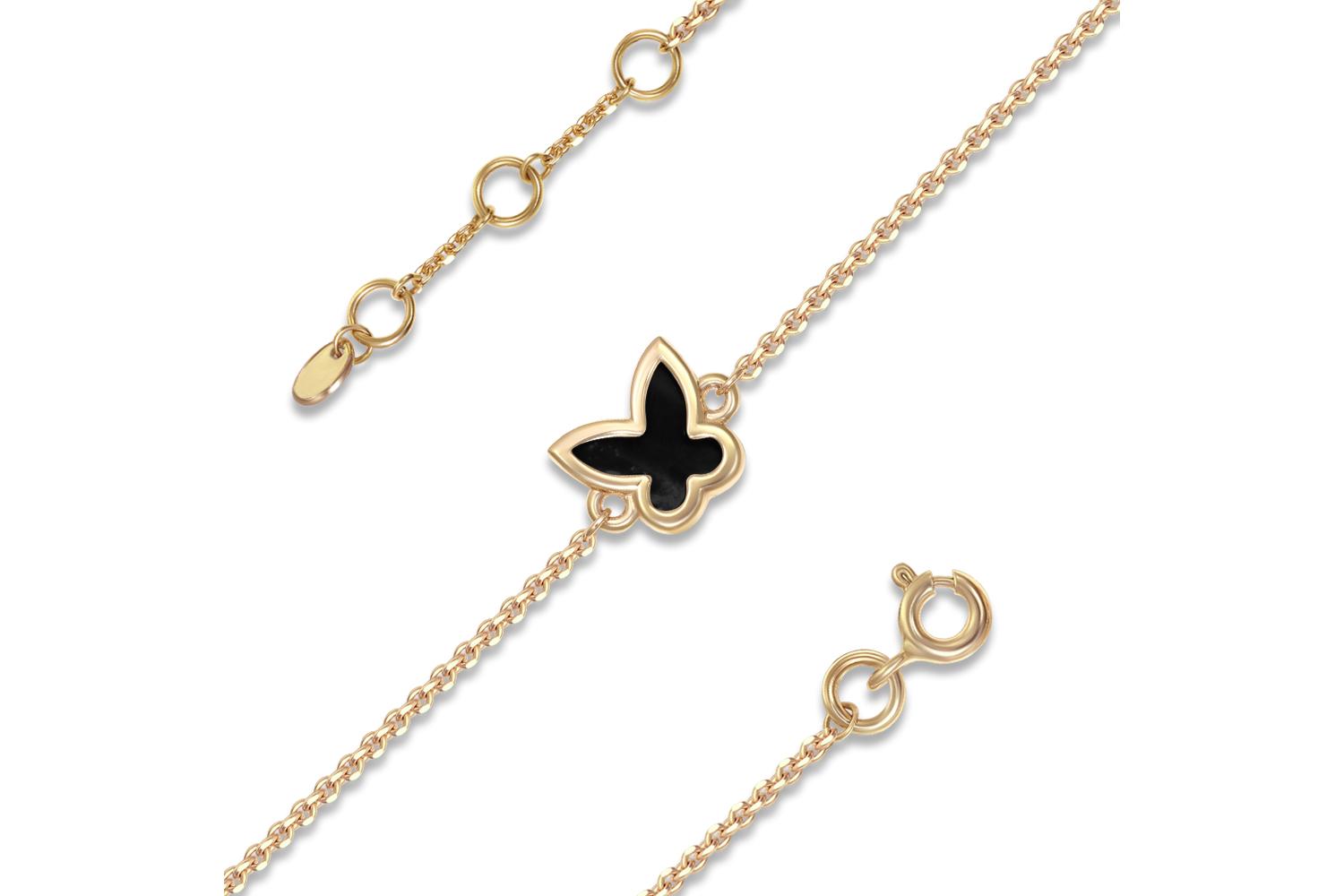 Мастера компании NEWGOLD, приложив всё свое мастерство и искусство, создали для Вас на нашем собственном производстве Браслет Бабочка из жёлтого золота с ониксом.