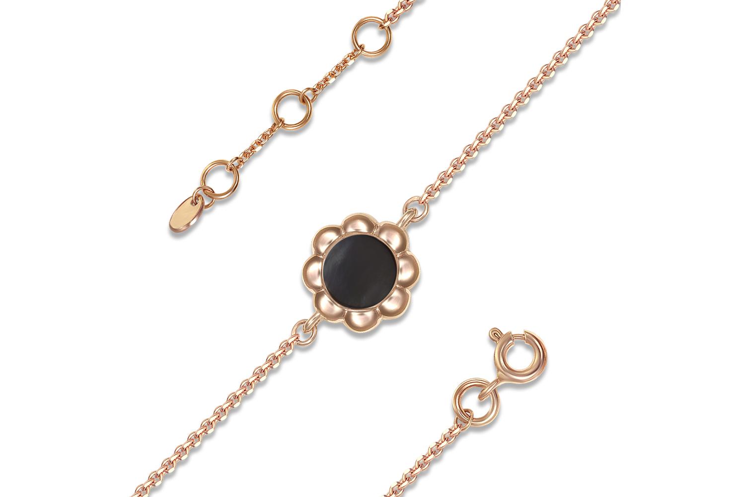 Мастера компании NEWGOLD, приложив всё свое мастерство и искусство, создали для Вас на нашем собственном производстве Детский браслет Цветок из красного золота с ониксом.