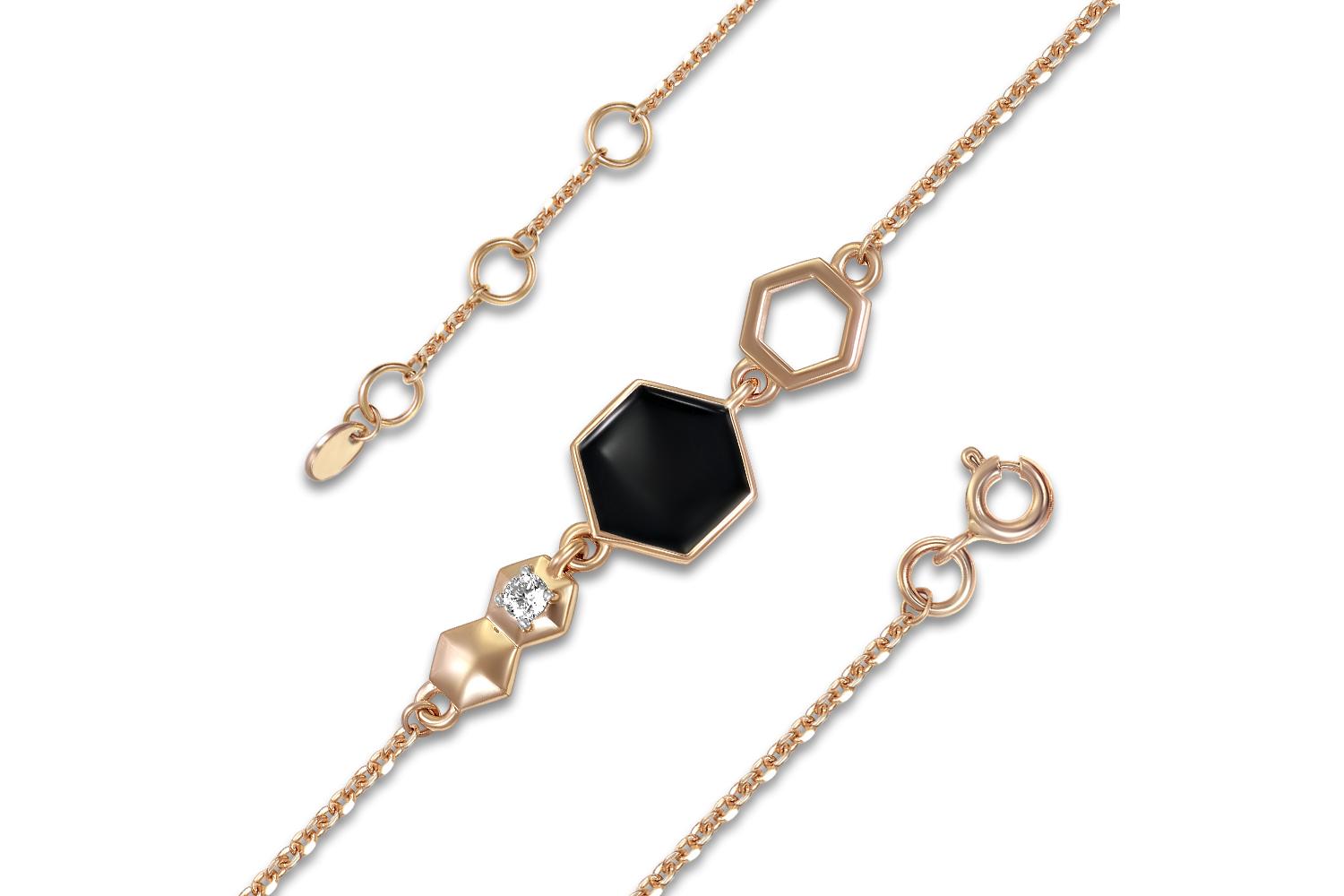 Мастера компании NEWGOLD, приложив всё свое мастерство и искусство, создали для Вас на нашем собственном производстве Браслет с шестиугольником из красного золота с бриллиантом.