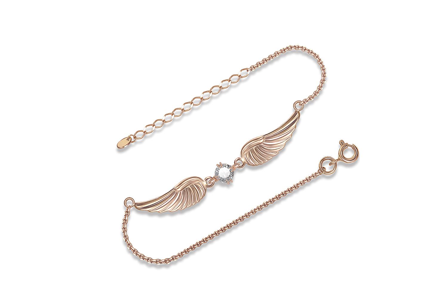 Мастера компании NEWGOLD, приложив всё свое мастерство и искусство, создали для Вас на нашем собственном производстве Браслет Крыло из красного золота с фианитом.