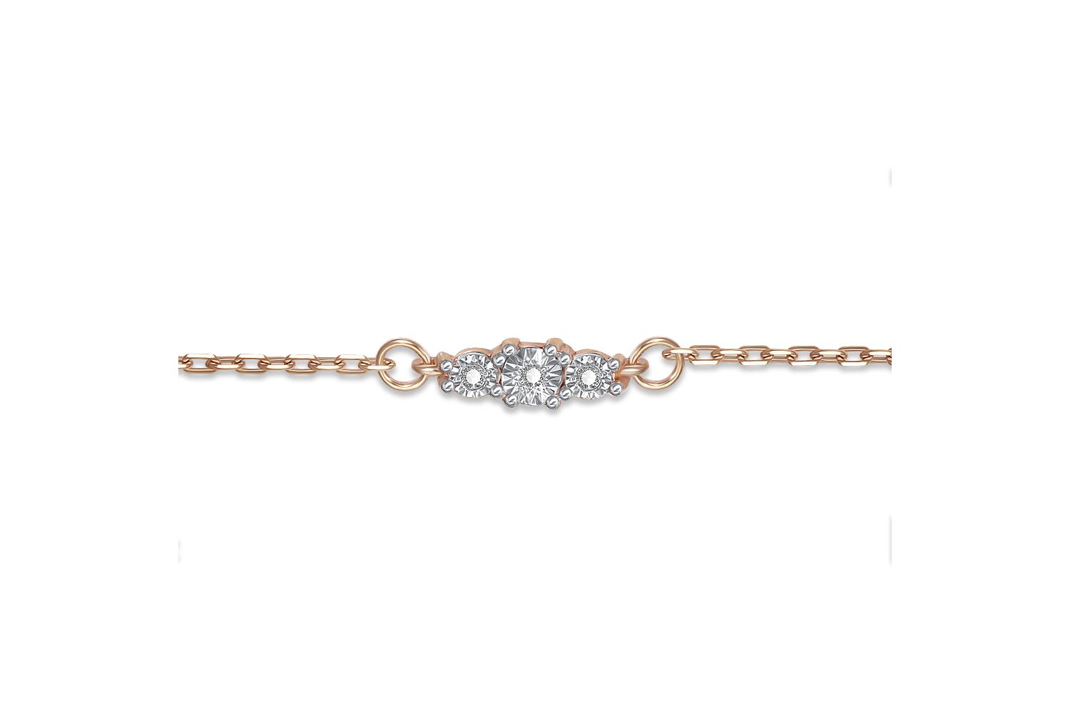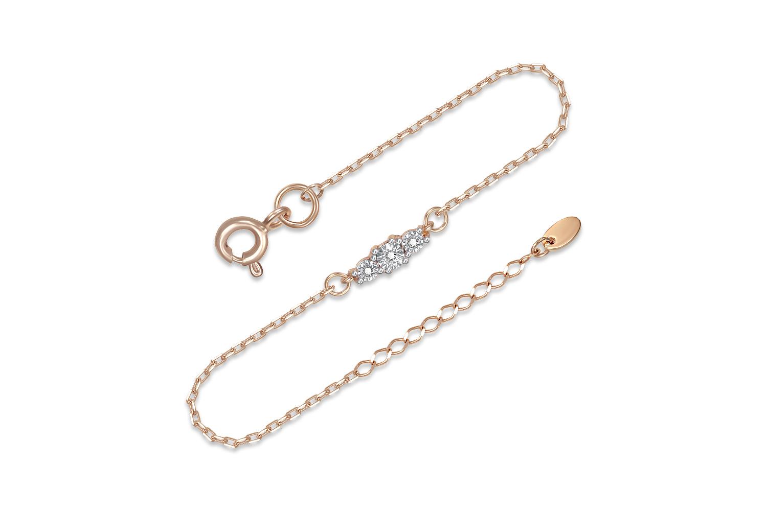 Мастера компании NEWGOLD, приложив всё свое мастерство и искусство, создали для Вас на нашем собственном производстве Браслет из красного золота с 3 бриллиантами.