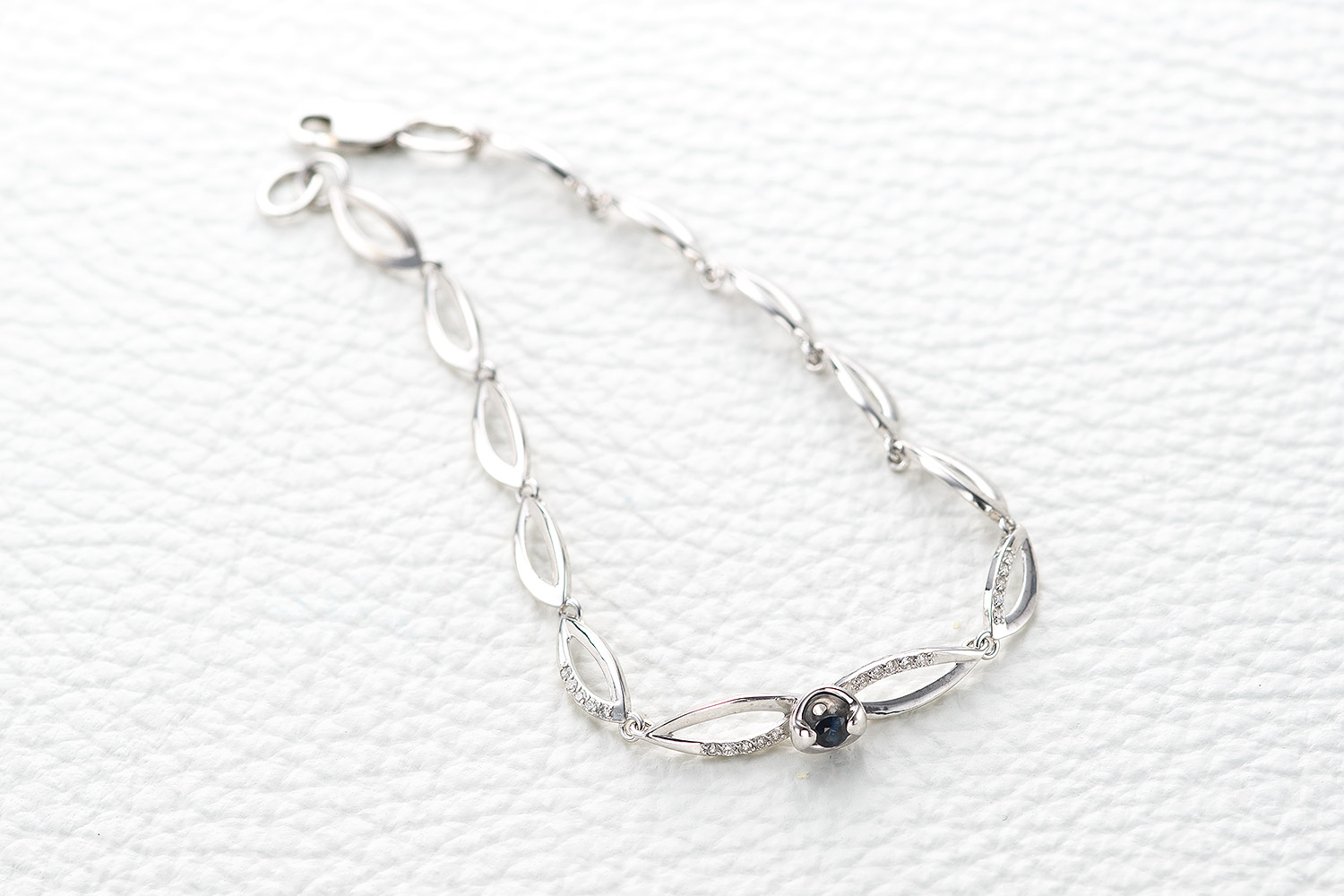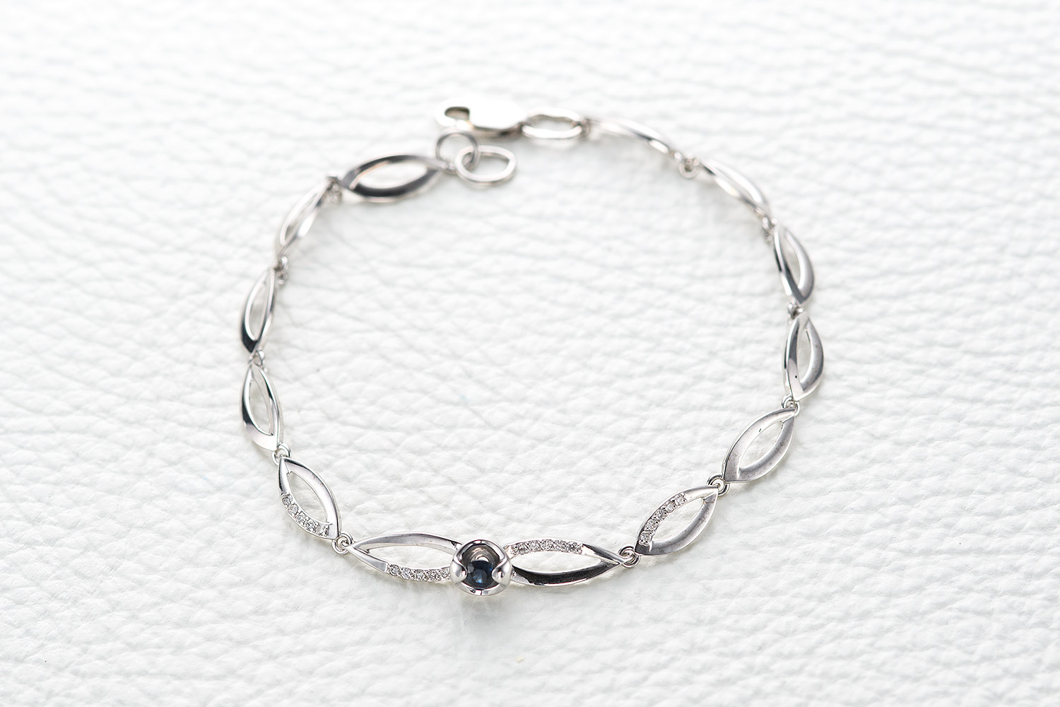 Мастера компании NEWGOLD, приложив всё свое мастерство и искусство, создали для Вас на нашем собственном производстве Браслет из белого золота с сапфиром и 20 бриллиантами.