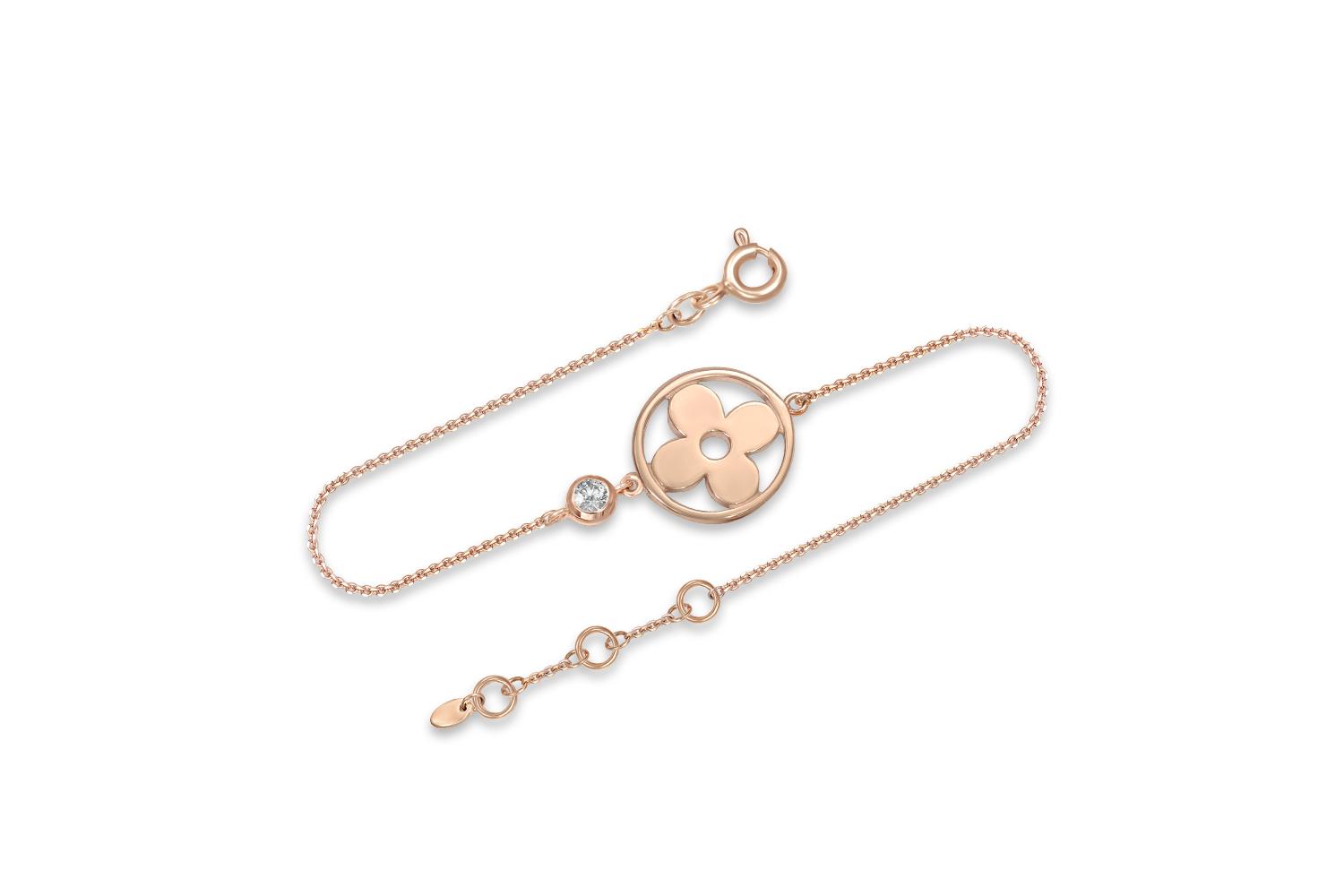 Мастера компании NEWGOLD, приложив всё свое мастерство и искусство, создали для Вас на нашем собственном производстве Браслет Клевер из красного золота с фианитом.