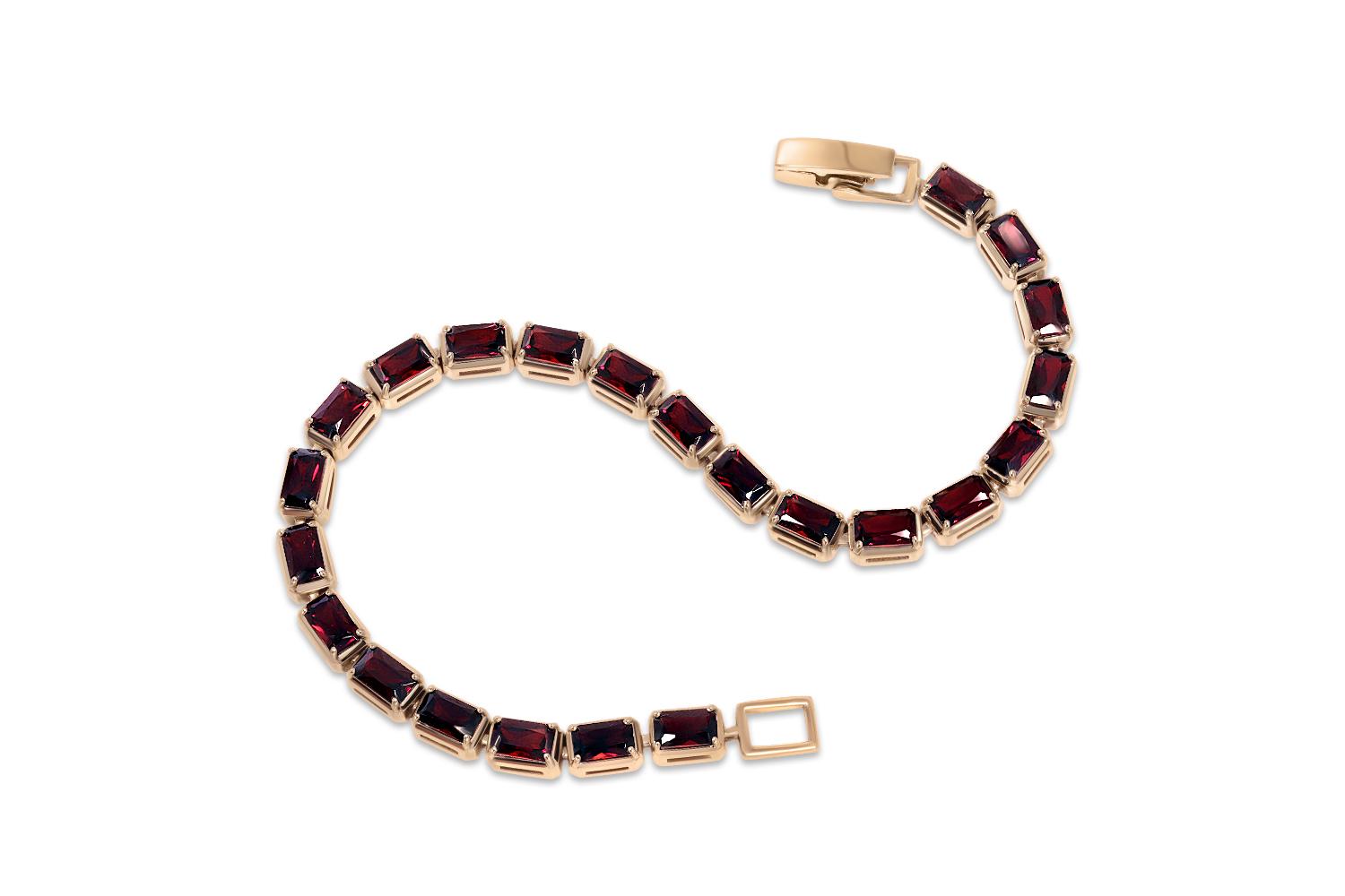 Мастера компании NEWGOLD, приложив всё свое мастерство и искусство, создали для Вас на нашем собственном производстве Браслет Дорожка из жёлтого золота с 32 гранатами.
