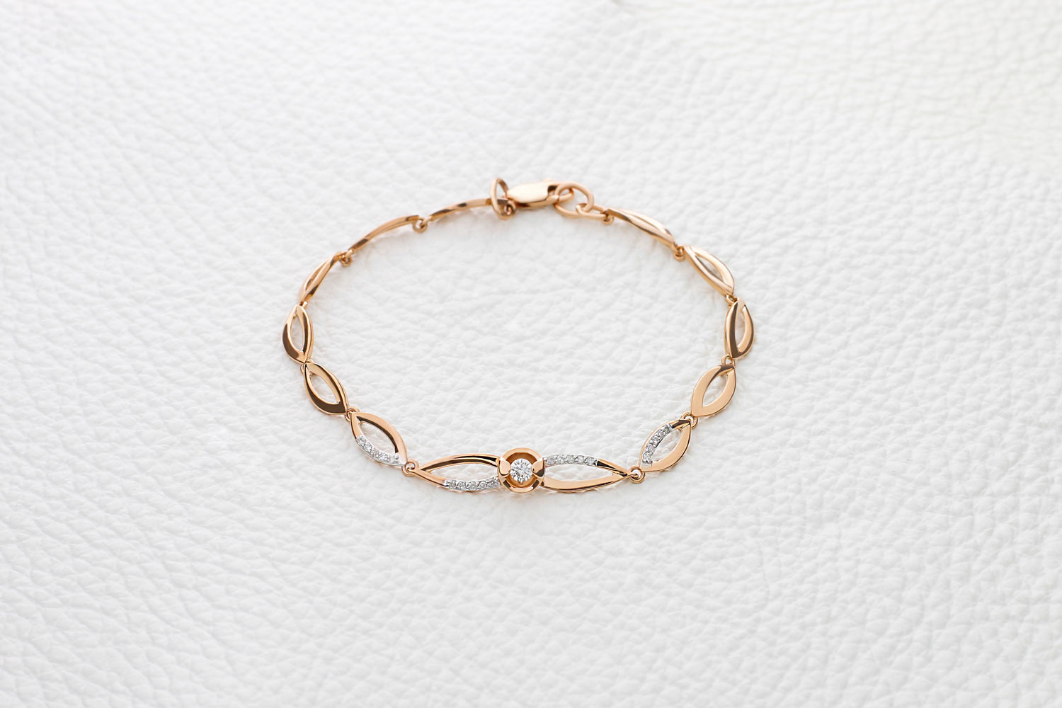 Мастера компании NEWGOLD, приложив всё свое мастерство и искусство, создали для Вас на нашем собственном производстве Браслет из красного золота с 21 бриллиантами.