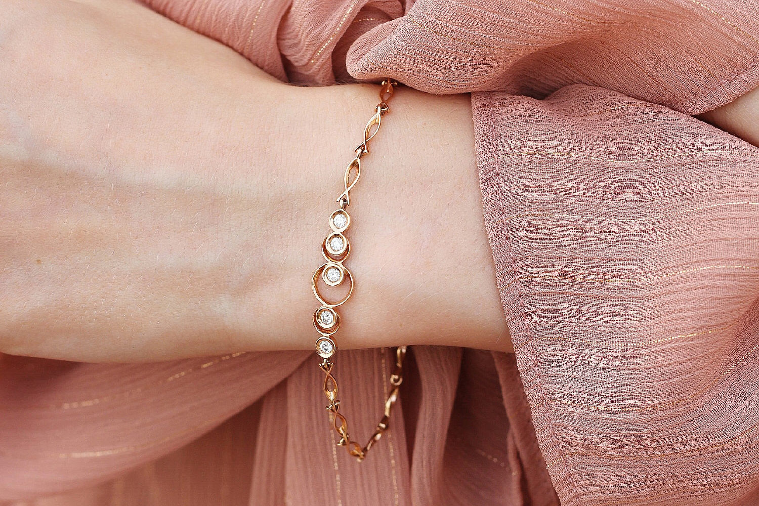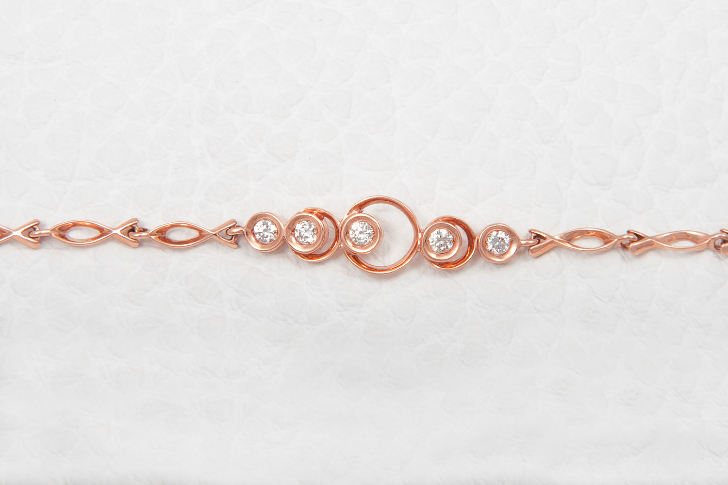 Мастера компании NEWGOLD, приложив всё свое мастерство и искусство, создали для Вас на нашем собственном производстве Браслет из красного золота с 5 бриллиантами.