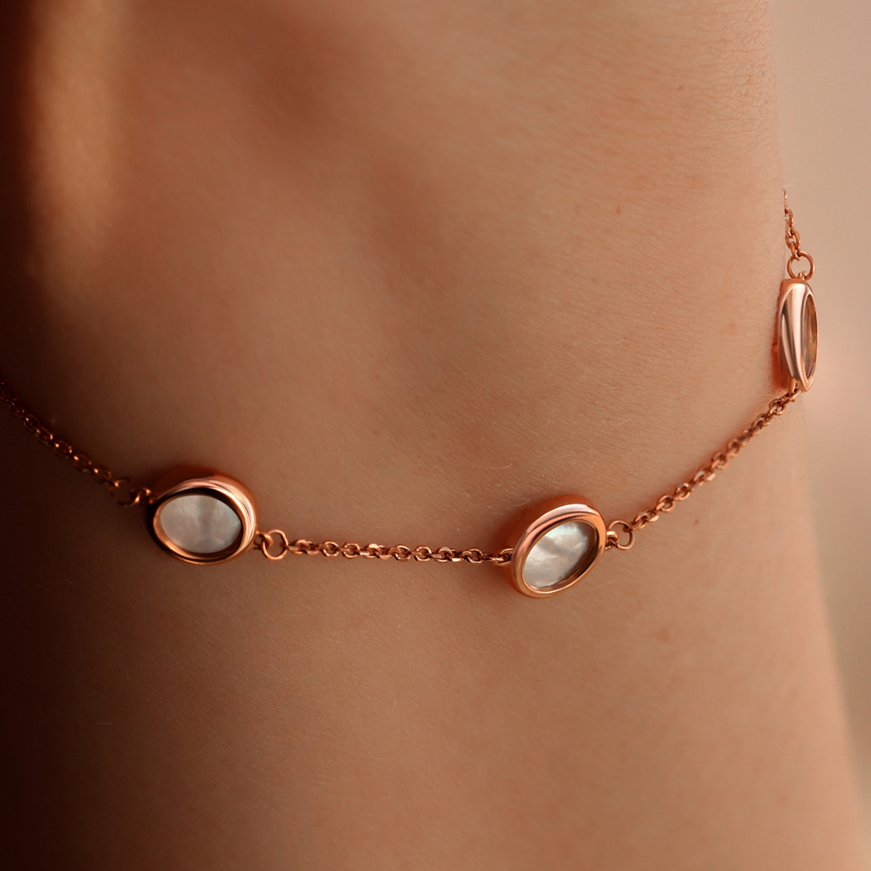 Мастера компании NEWGOLD, приложив всё свое мастерство и искусство, создали для Вас на нашем собственном производстве Браслет из красного золота с перламутром.