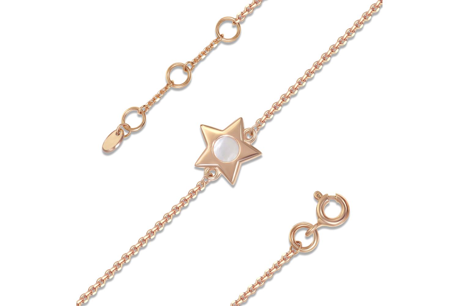 Мастера компании NEWGOLD, приложив всё свое мастерство и искусство, создали для Вас на нашем собственном производстве Детский браслет Звезда из красного золота с перламутром.