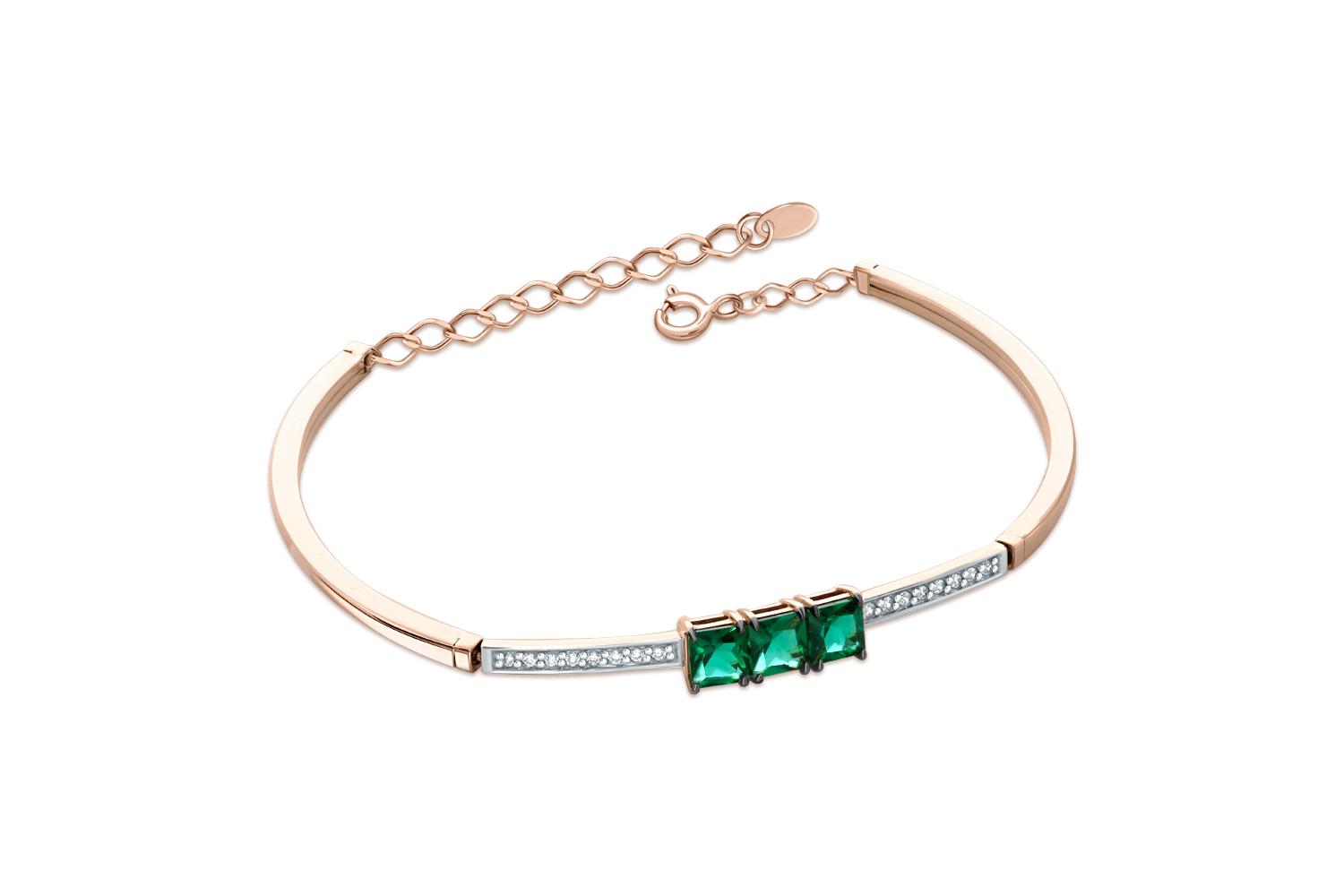 Мастера компании NEWGOLD, приложив всё свое мастерство и искусство, создали для Вас на нашем собственном производстве Браслет из красного золота с 3 изумрудами и 16 фианитами.