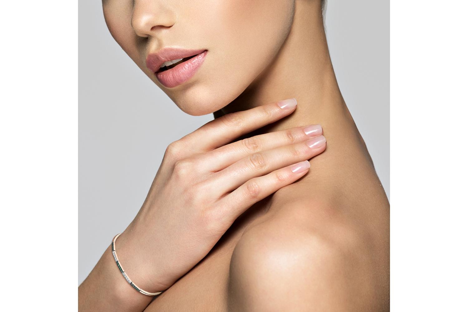 Мастера компании NEWGOLD, приложив всё свое мастерство и искусство, создали для Вас на нашем собственном производстве Браслет из красного золота с 15 изумрудами и 10 сапфирами.