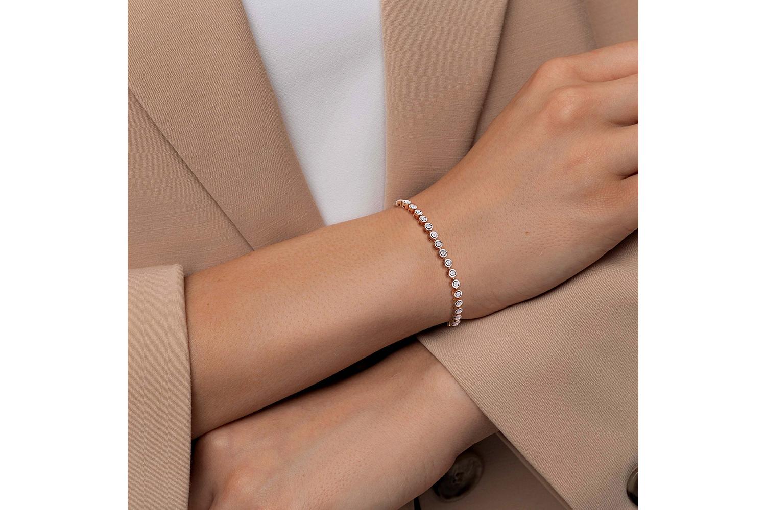 Мастера компании NEWGOLD, приложив всё свое мастерство и искусство, создали для Вас на нашем собственном производстве Браслет Дорожка из красного золота с 36 бриллиантами.