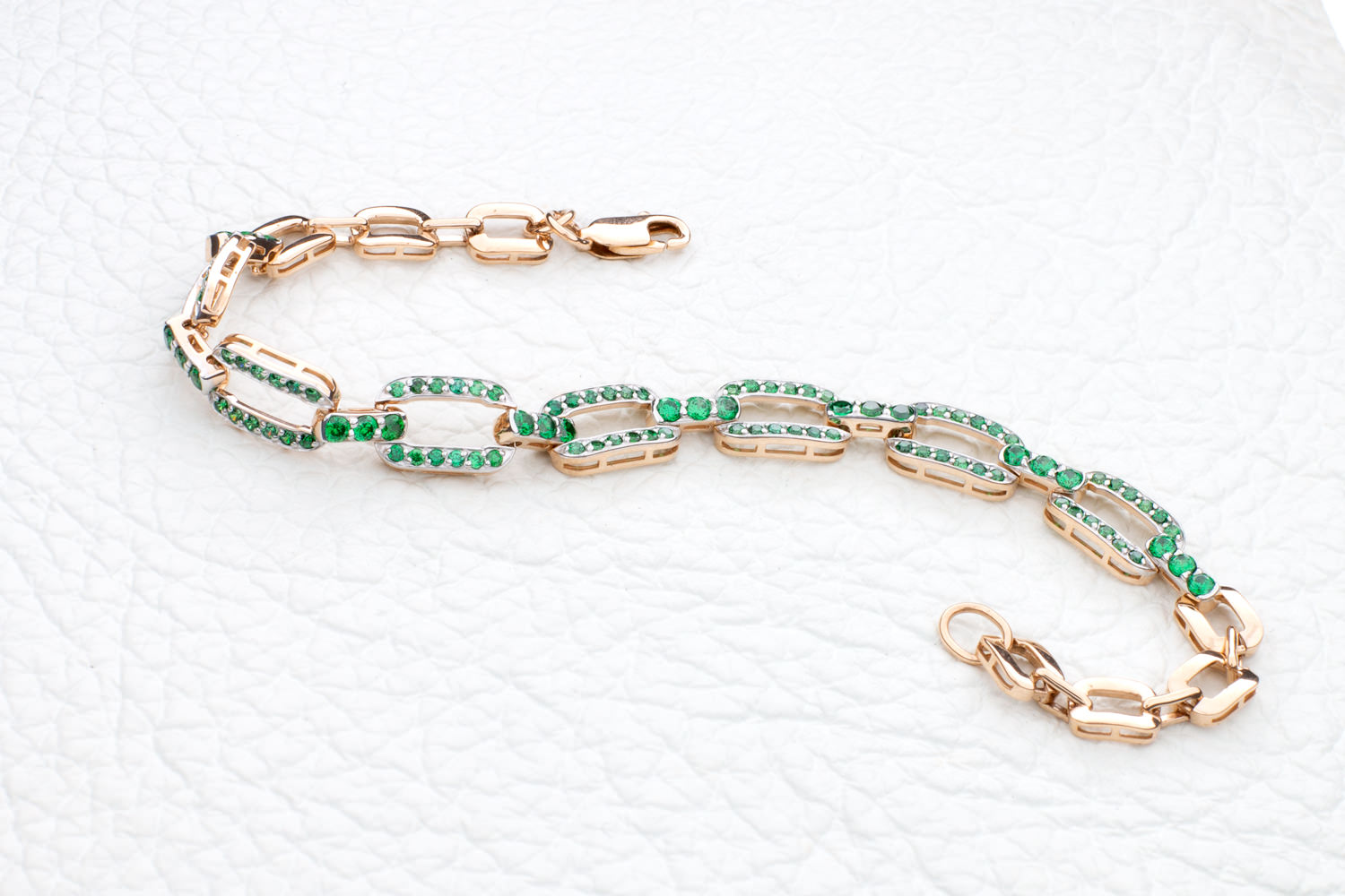 Мастера компании NEWGOLD, приложив всё свое мастерство и искусство, создали для Вас на нашем собственном производстве Браслет из красного золота с 108 фианитами.