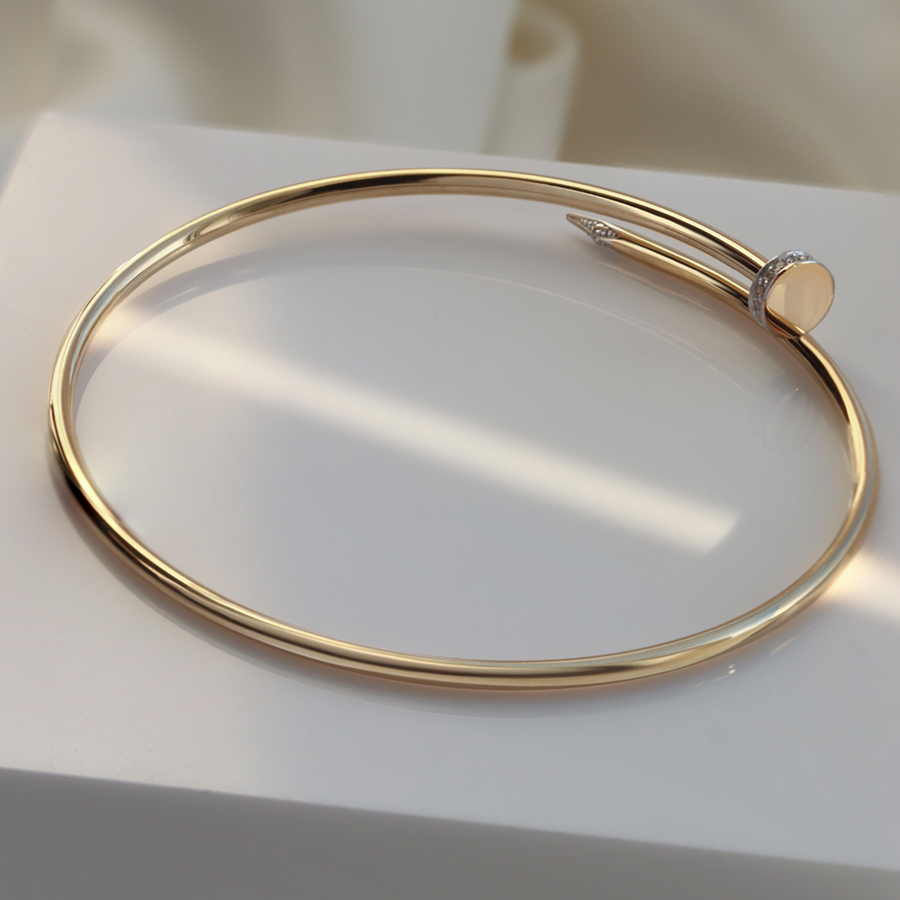 Мастера компании NEWGOLD, приложив всё свое мастерство и искусство, создали для Вас на нашем собственном производстве Браслет Гвоздь из жёлтого золота с 18 бриллиантами.
