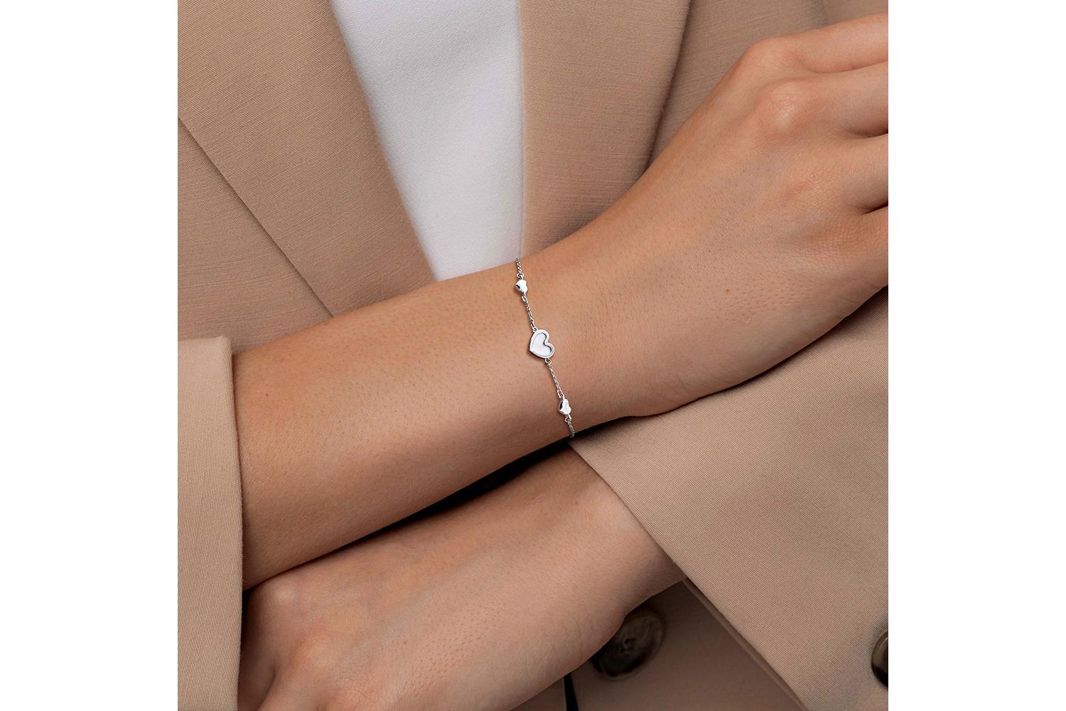 Мастера компании NEWGOLD, приложив всё свое мастерство и искусство, создали для Вас на нашем собственном производстве Браслет Сердце из белого золота с перламутром.