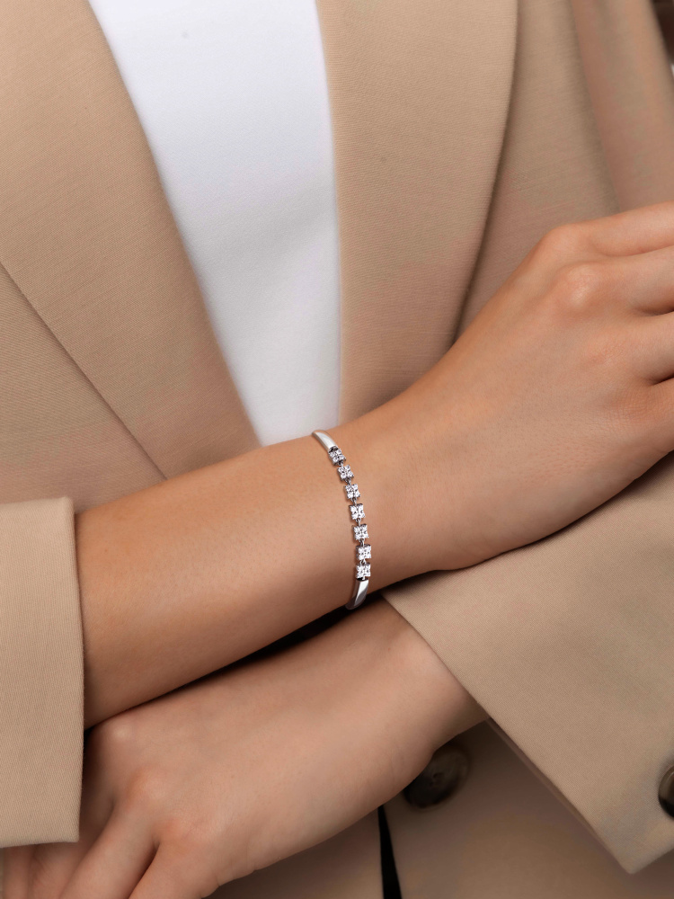 Мастера компании NEWGOLD, приложив всё свое мастерство и искусство, создали для Вас на нашем собственном производстве Браслет из белого золота с 28 муассанитами.