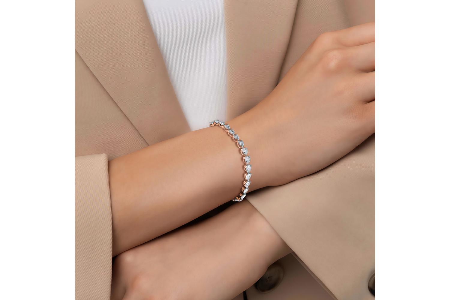 Мастера компании NEWGOLD, приложив всё свое мастерство и искусство, создали для Вас на нашем собственном производстве Браслет Дорожка из красного золота с 43 фианитами.