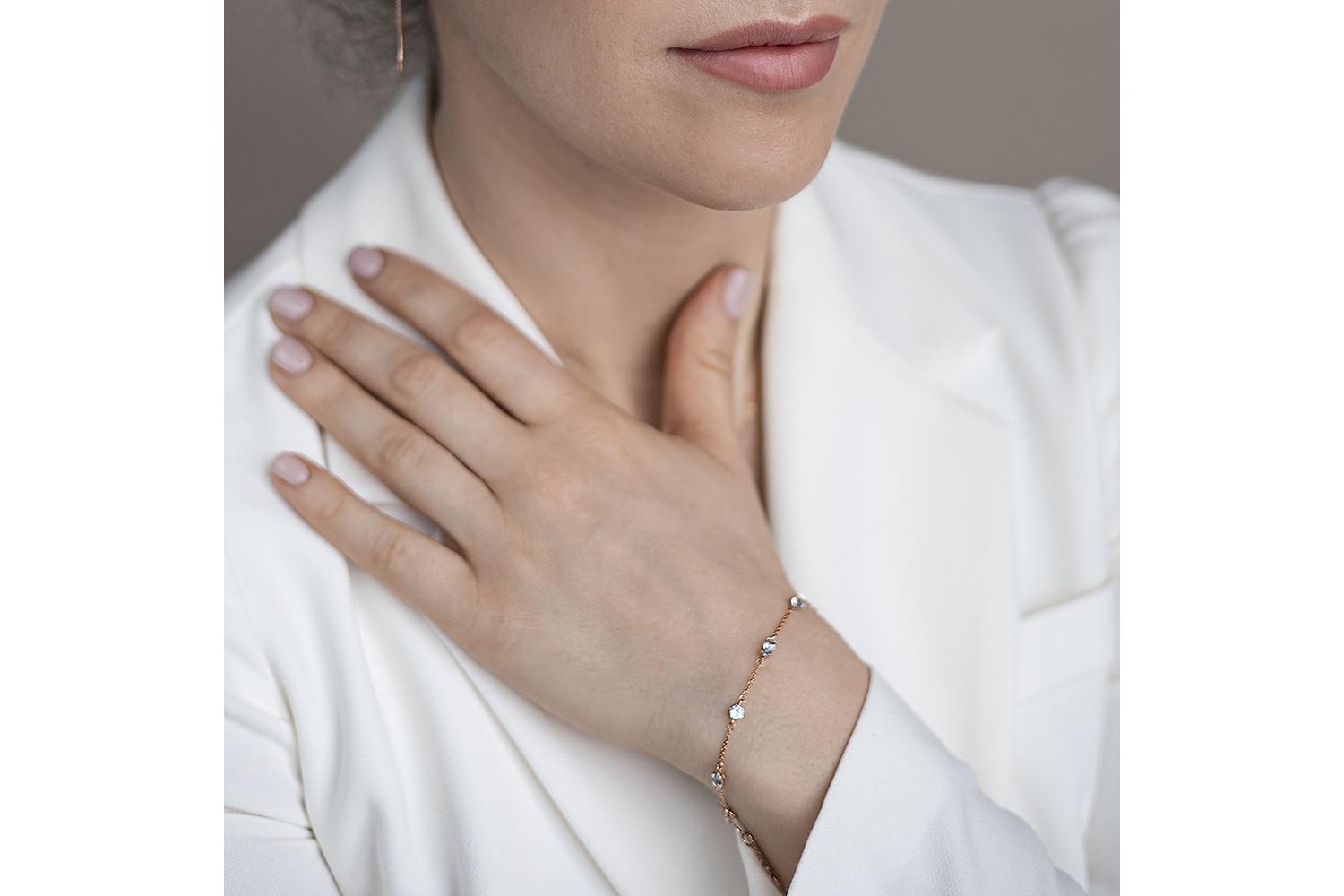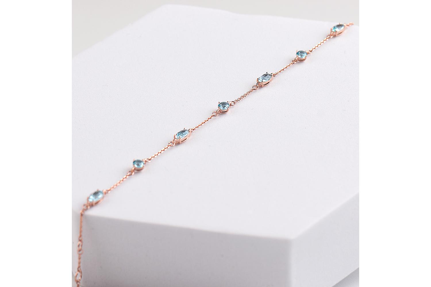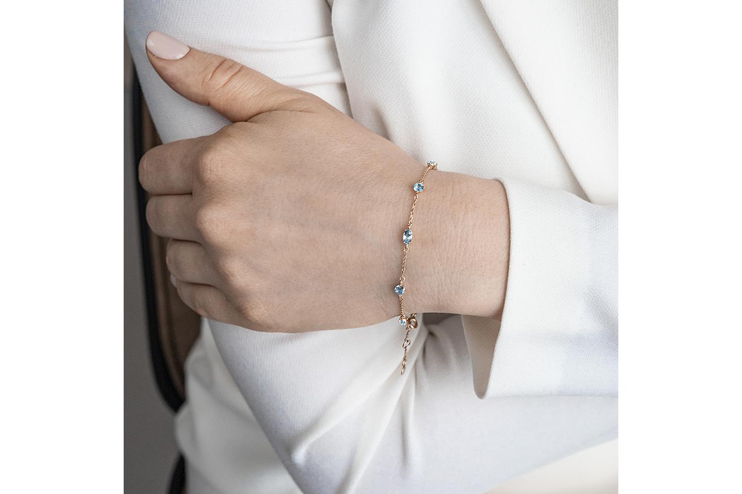 Мастера компании NEWGOLD, приложив всё свое мастерство и искусство, создали для Вас на нашем собственном производстве Браслет из красного золота с 8 топазами sky.