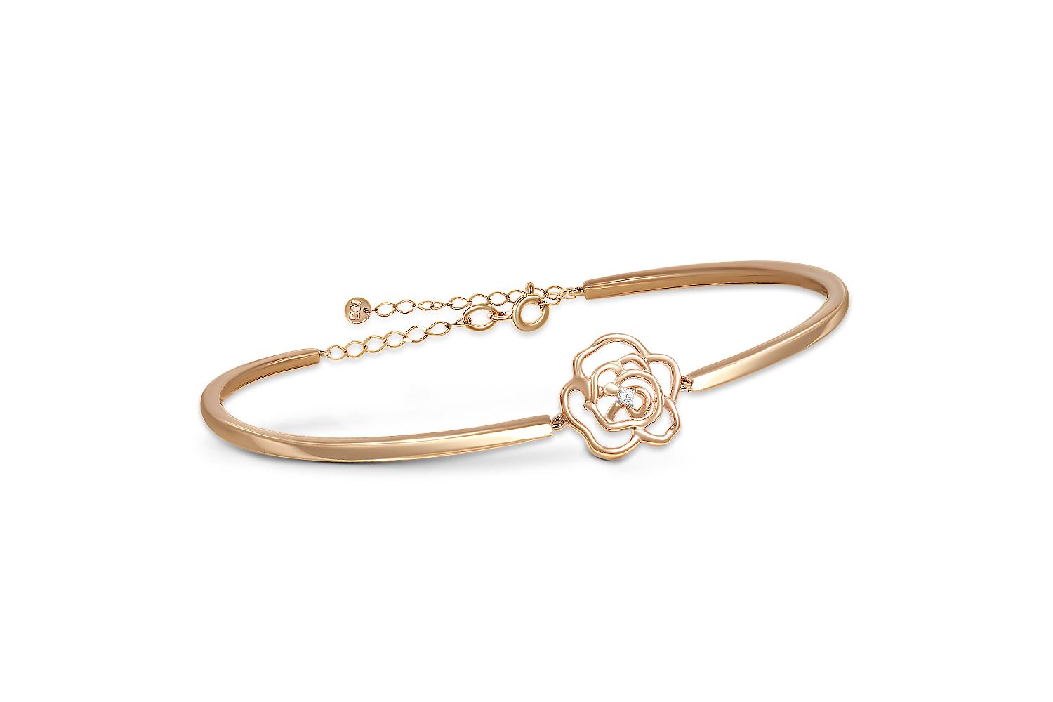 Мастера компании NEWGOLD, приложив всё свое мастерство и искусство, создали для Вас на нашем собственном производстве Браслет Цветок из красного золота с бриллиантом.