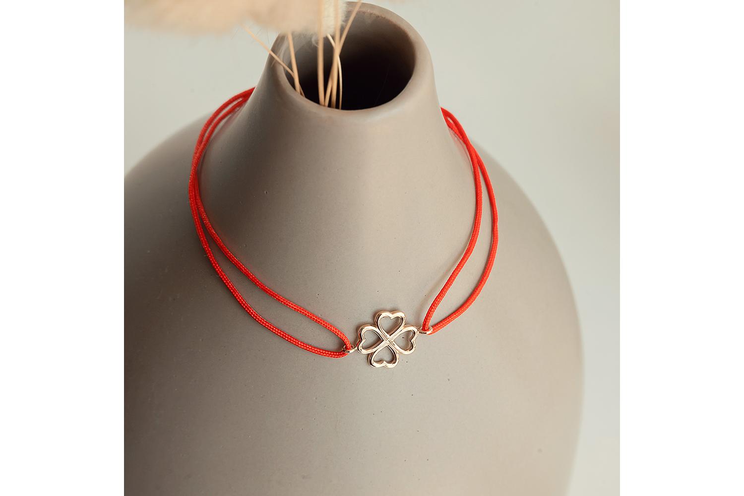 Коллекция: Эластик. Браслет с красной нитью клевер из золота 585 пробы бренда NEWGOLD. Клевер - это символ удачи. Ювелирный Браслет регулируется на несколько размеров. Украшения NEWGOLD приходят в комплекте с транспортной упаковкой, идеально подходят для подарка любимой женщине, девушке, девочке на День рождения, Новый год, 8 марта, день всех влюбленных (14 февраля) или любой праздник, и повод. Вес товара, указанного в карточке,является минимальным и может отличаться от фактического. Приятных покупок ! С уважением команда NEWGOLD.