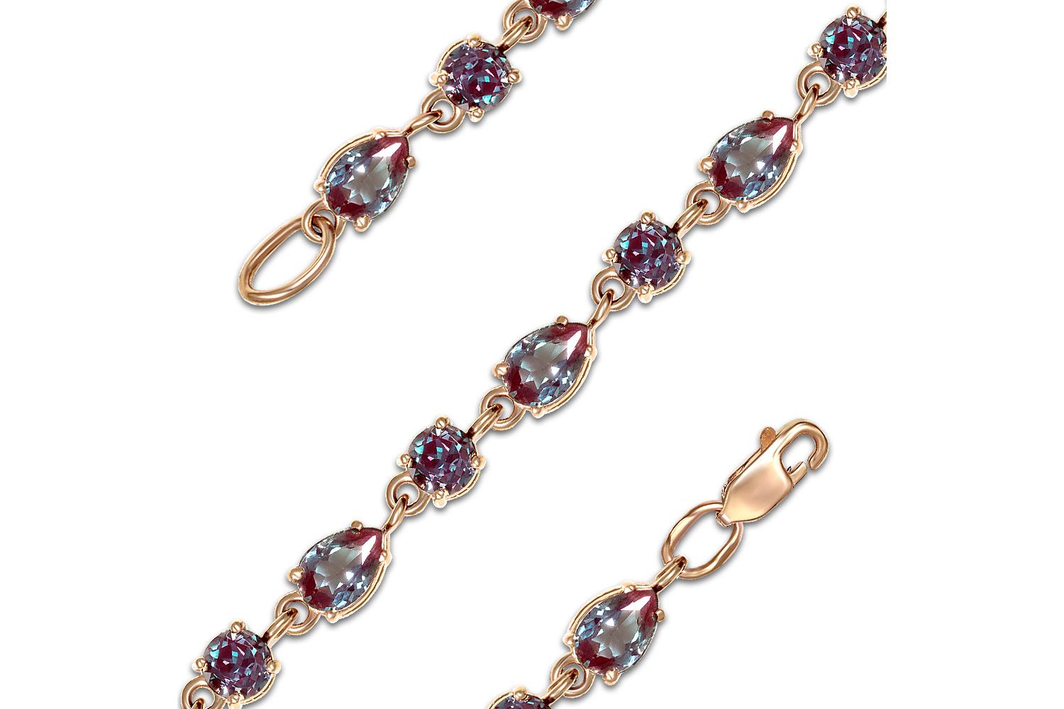 Мастера компании NEWGOLD, приложив всё свое мастерство и искусство, создали для Вас на нашем собственном производстве Браслет Дорожка из красного золота с 22 александритами.
