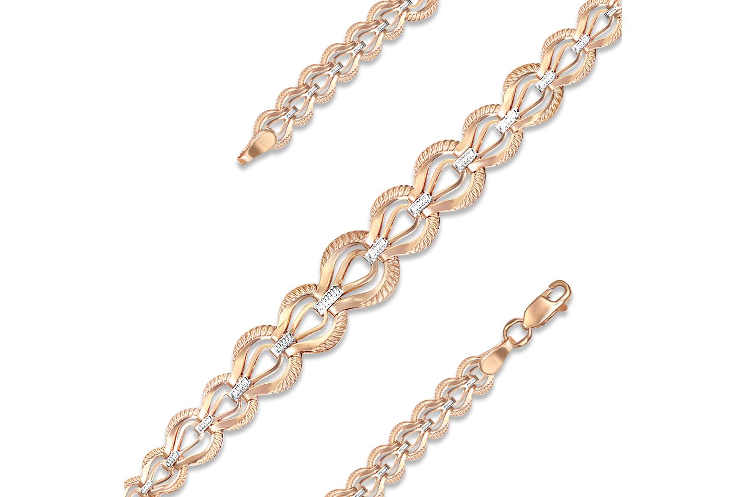 Украшение сочетает в себе блестящее внешнее исполнение наших ювелиров и удобство: размер регулируется в зависимости от предпочтений. Браслет на руку можно носить не только для создания классического образа, но и спортивного стиля.