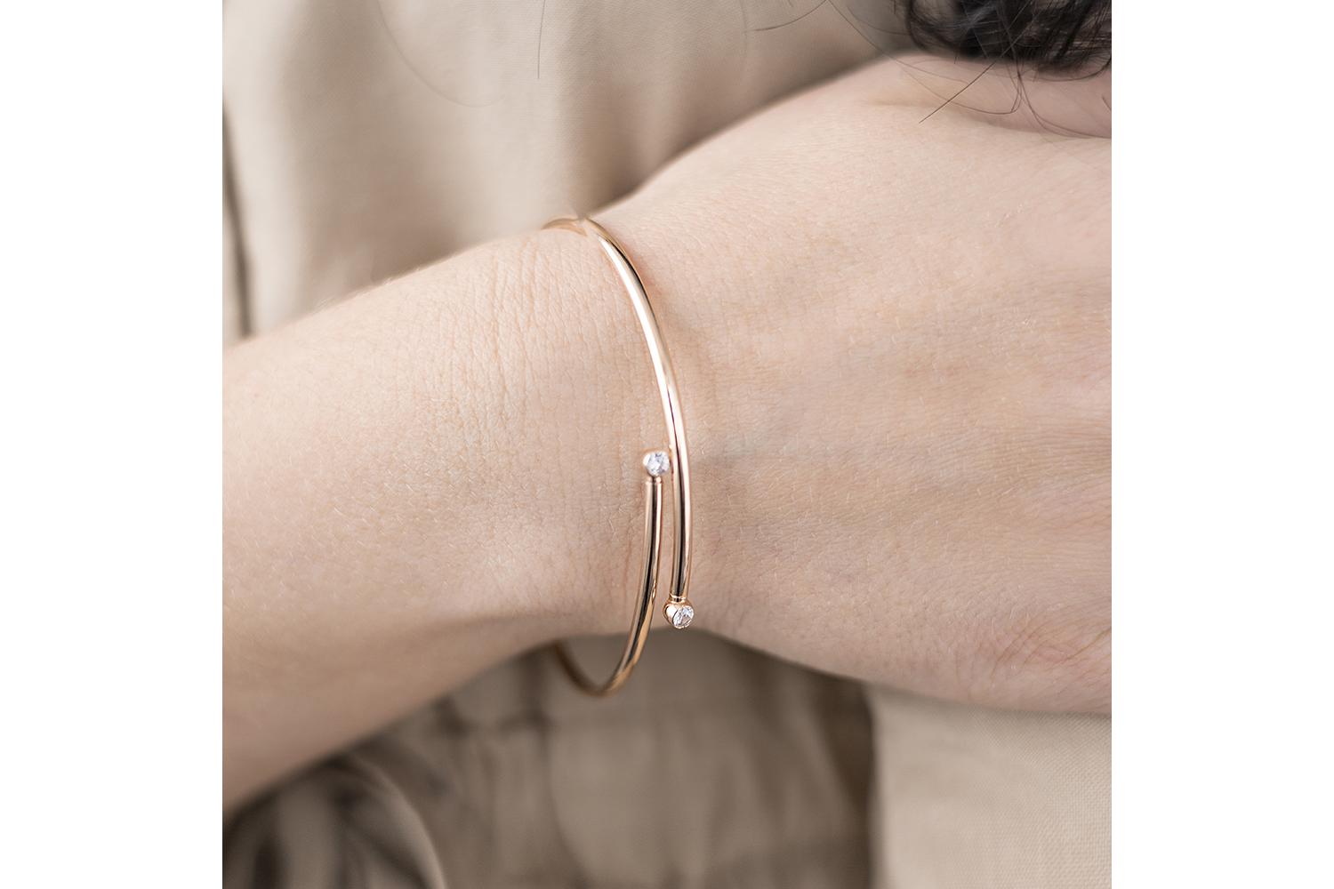 Лёгкий (пустотелый) и свободный браслет с 2мя блестящими фианитами - офигенный аксессуар на лето)Мне нравится, как свободно он гуляет по руке, подчёркивая мои тонкие запястья.