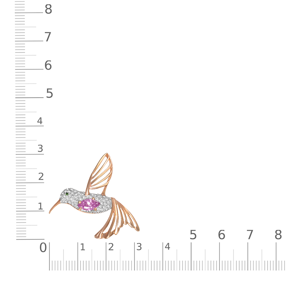 Мастера компании NEWGOLD, приложив всё свое мастерство и искусство, создали для Вас на нашем собственном производстве Брошь Колибри из красного золота с 49 фианитами.