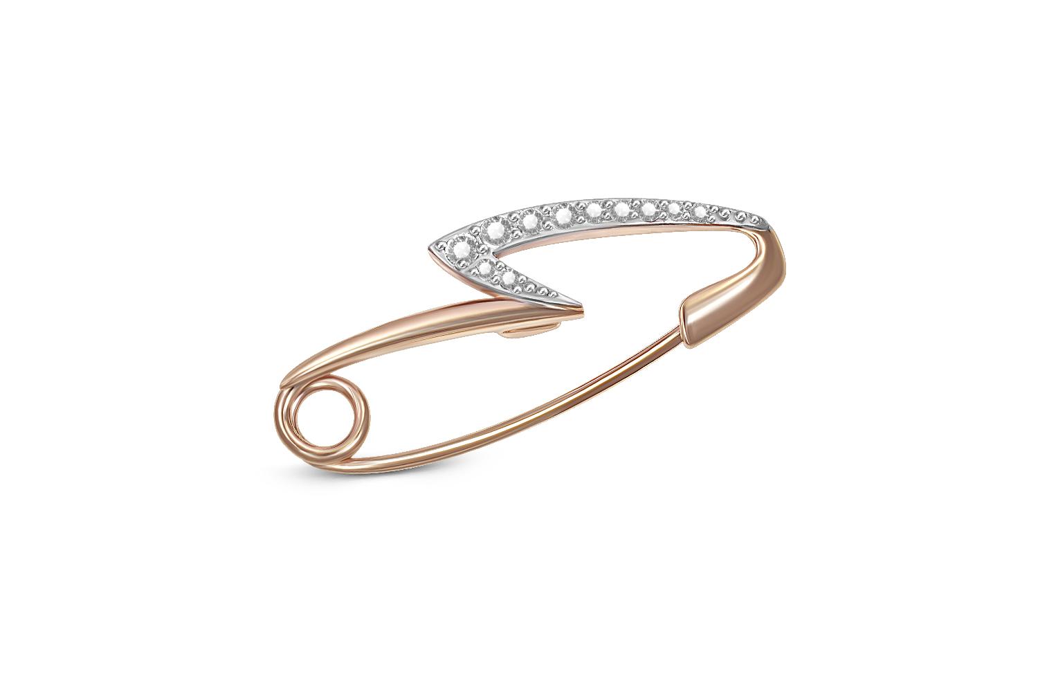 Закажите Брошь Молния из красного золота с 11 фианитами с получением в Москве через курьерскую службу доставки напрямую с нашего производственного склада завода NEWGOLD!