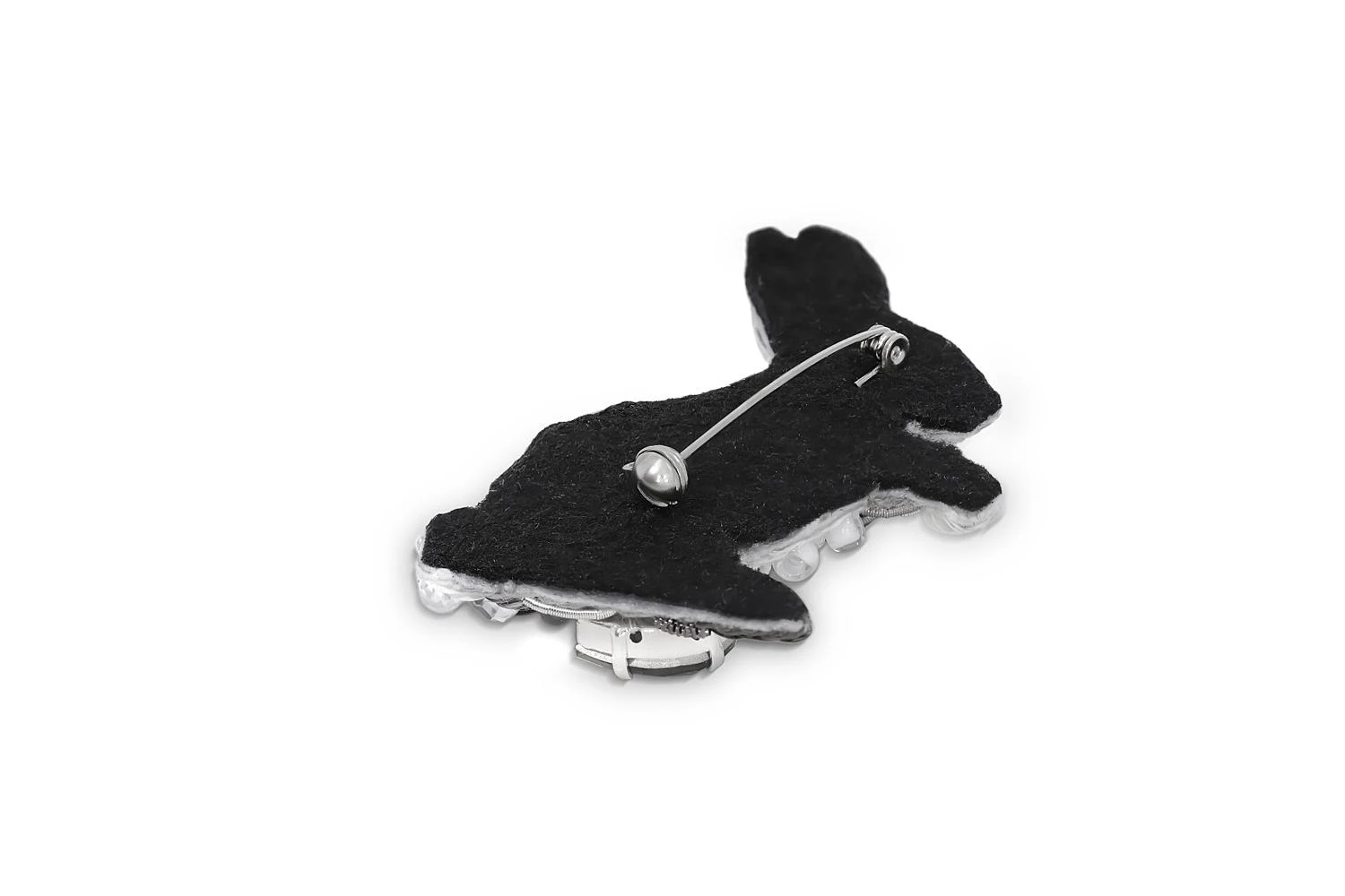 Кристилл (серый 2 шт. качество люкс), Пайетки Италия, Бисер Чехия,Трунцал и Канитель Индия (различные оттенки серого и серебряного цвета фигурная и витая спираль), вышивка шерстяными нитками. Японская булавка с поворотным механизмом