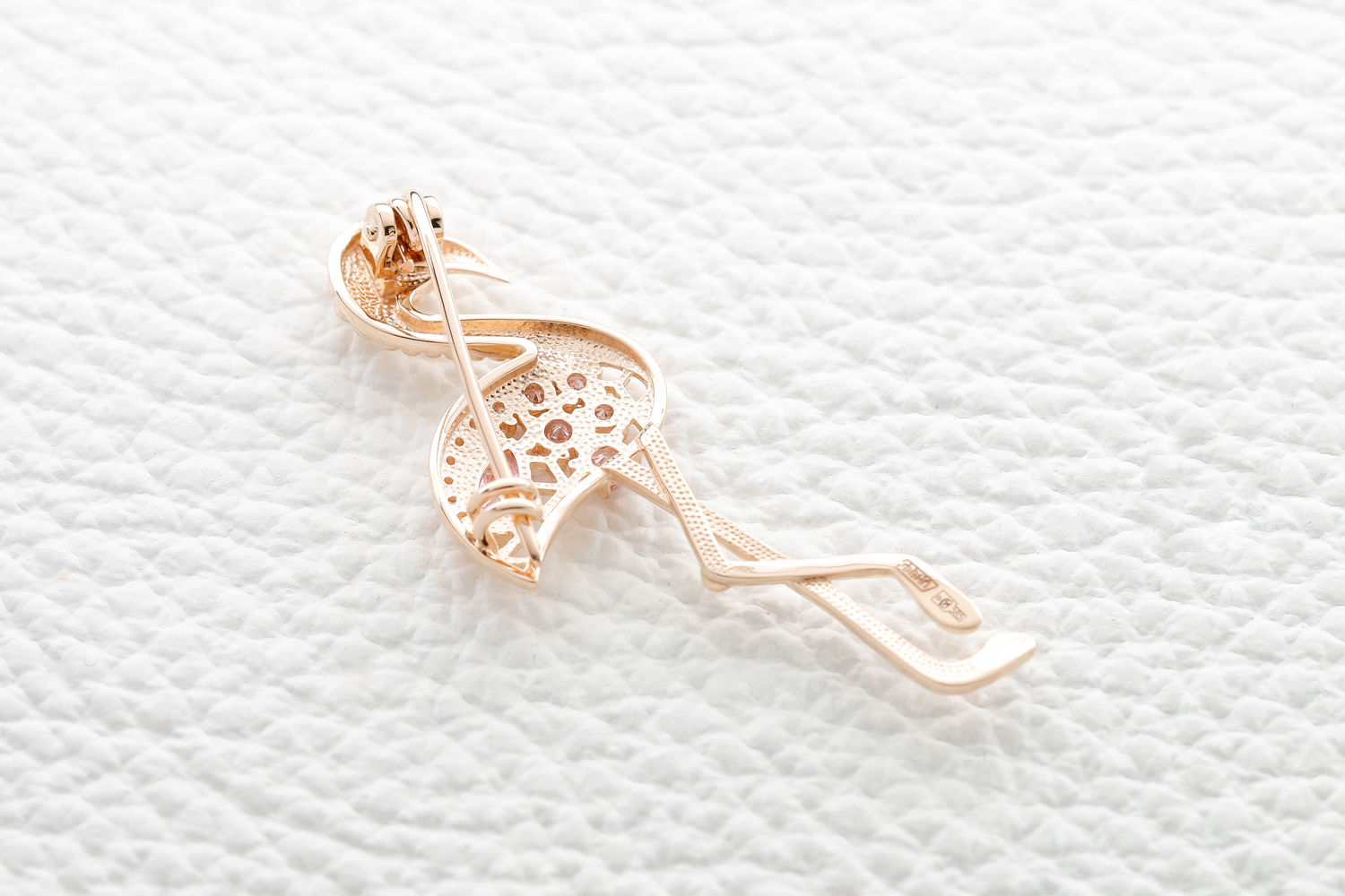 Мастера компании NEWGOLD, приложив всё свое мастерство и искусство, создали для Вас на нашем собственном производстве Брошь Фламинго из красного золота с 13 фианитами.