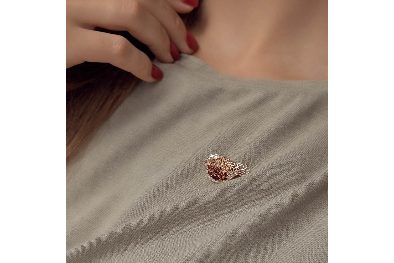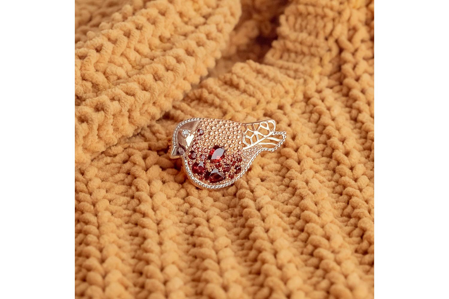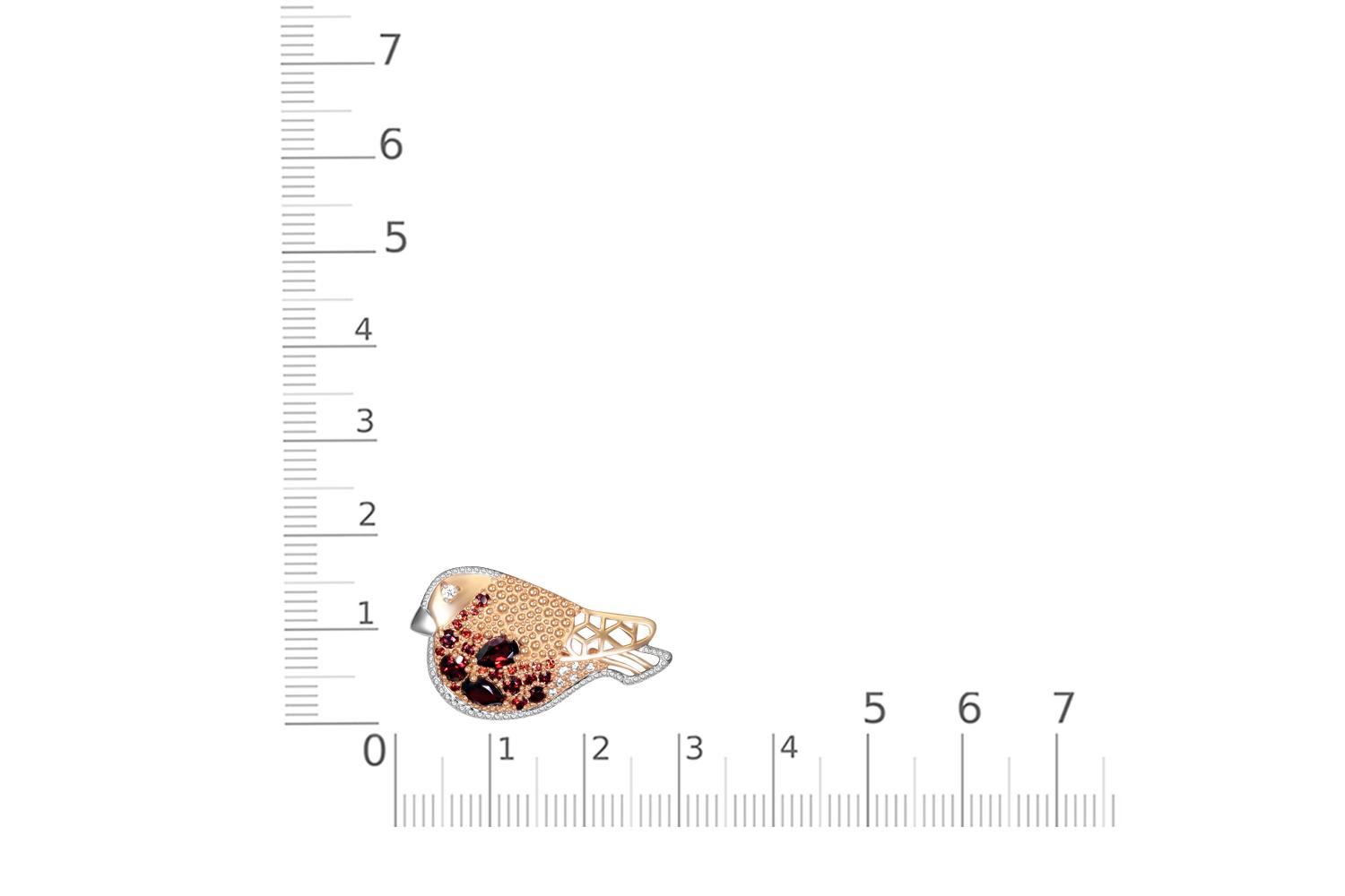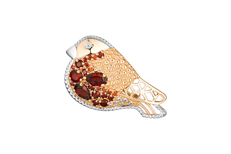 Мастера компании NEWGOLD, приложив всё свое мастерство и искусство, создали для Вас на нашем собственном производстве Брошь Снегирь из красного золота с 24 гранатами и 7 фианитами.