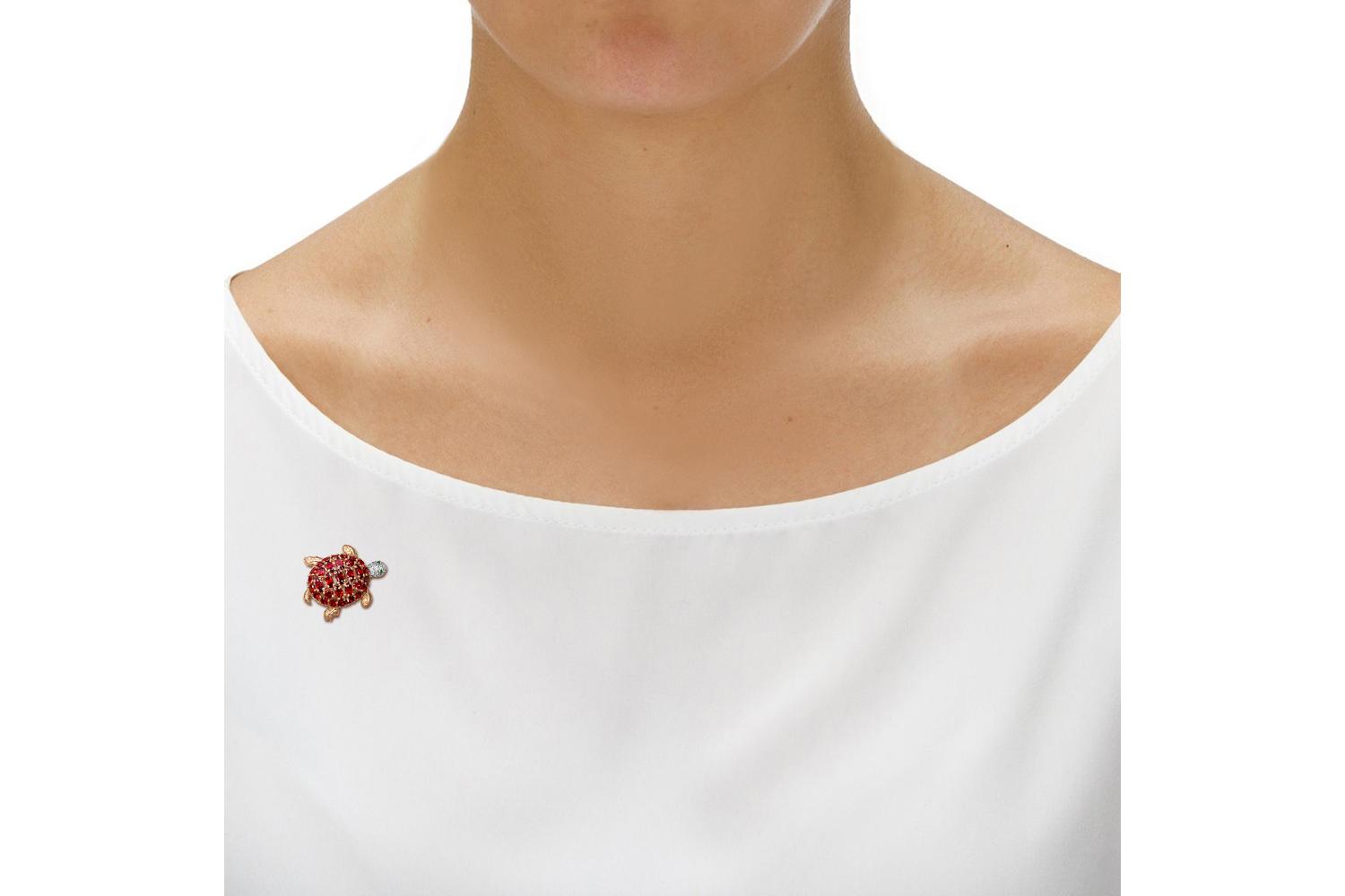 Мастера компании NEWGOLD, приложив всё свое мастерство и искусство, создали для Вас на нашем собственном производстве Брошь Черепаха из красного золота с 54 фианитами.