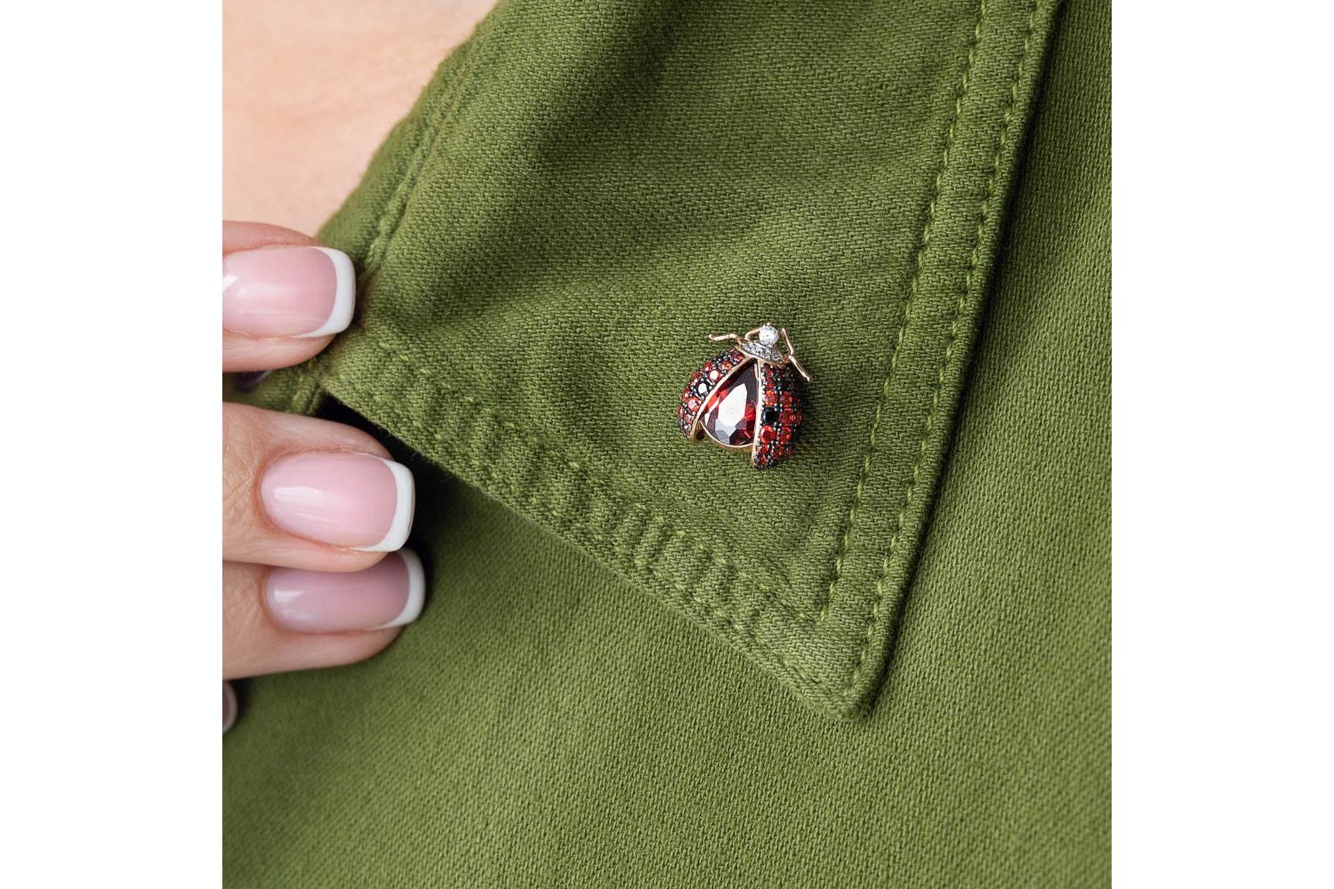 Мастера компании NEWGOLD, приложив всё свое мастерство и искусство, создали для Вас на нашем собственном производстве Брошь Божья коровка из красного золота с 66 фианитами.