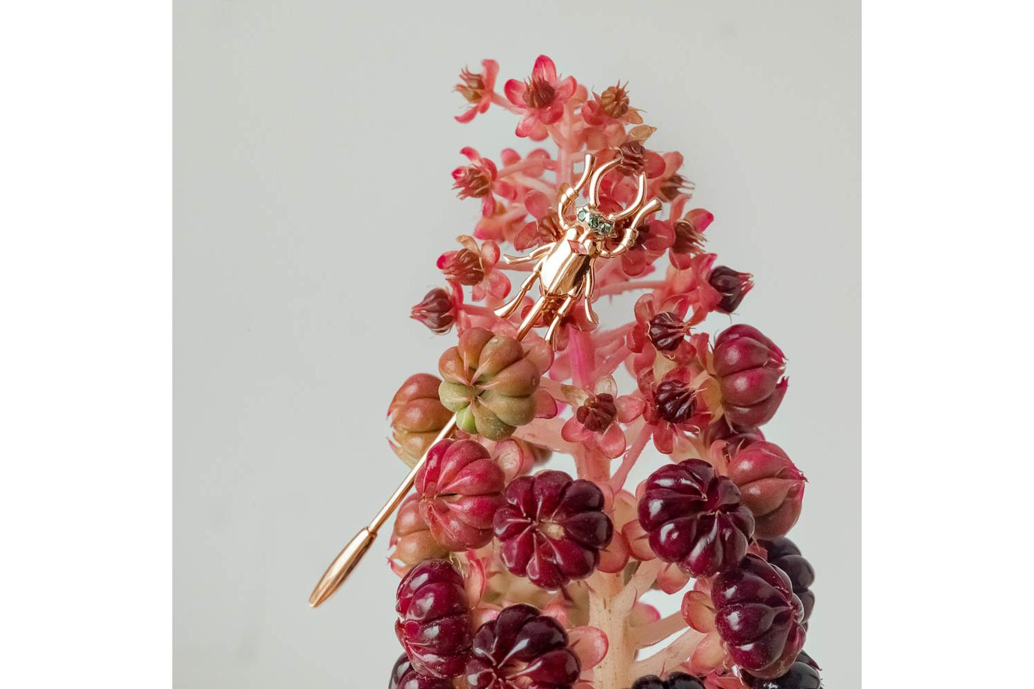 Мастера компании NEWGOLD, приложив всё свое мастерство и искусство, создали для Вас на нашем собственном производстве Брошь Жук из красного золота с 3 фианитами.