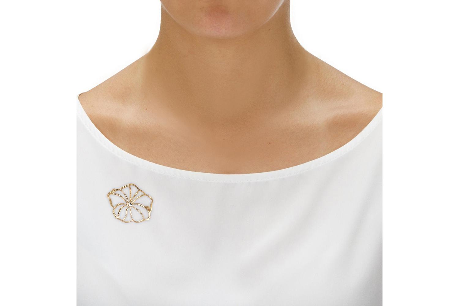 Мастера компании NEWGOLD, приложив всё свое мастерство и искусство, создали для Вас на нашем собственном производстве Брошь Цветок из жёлтого золота с фианитом.