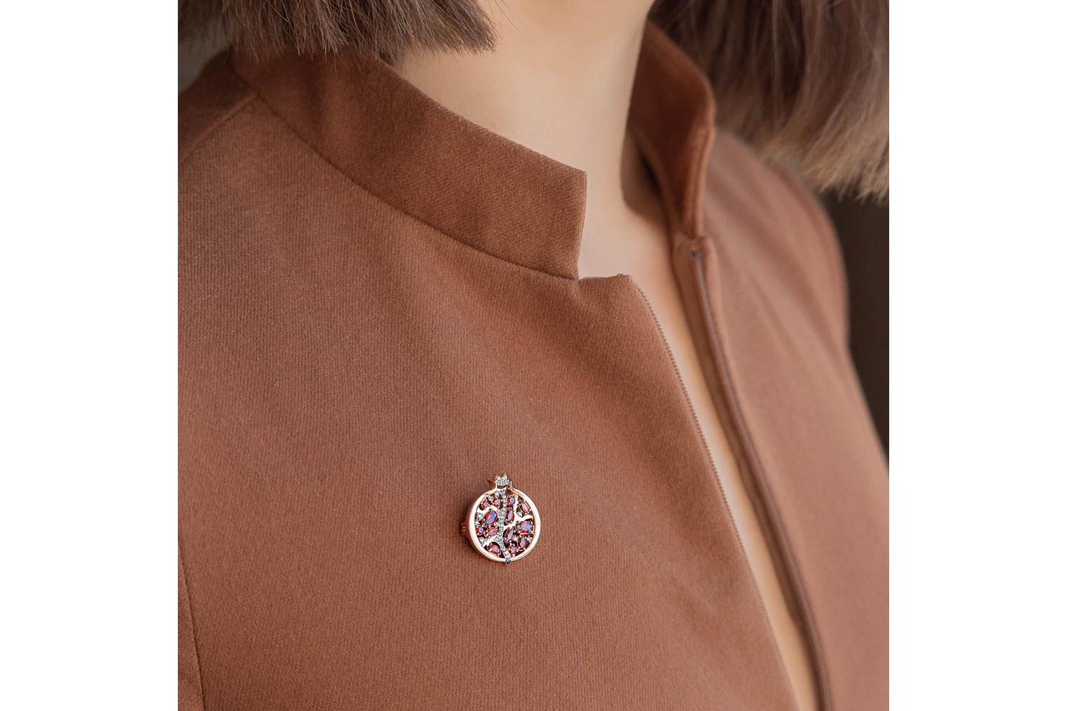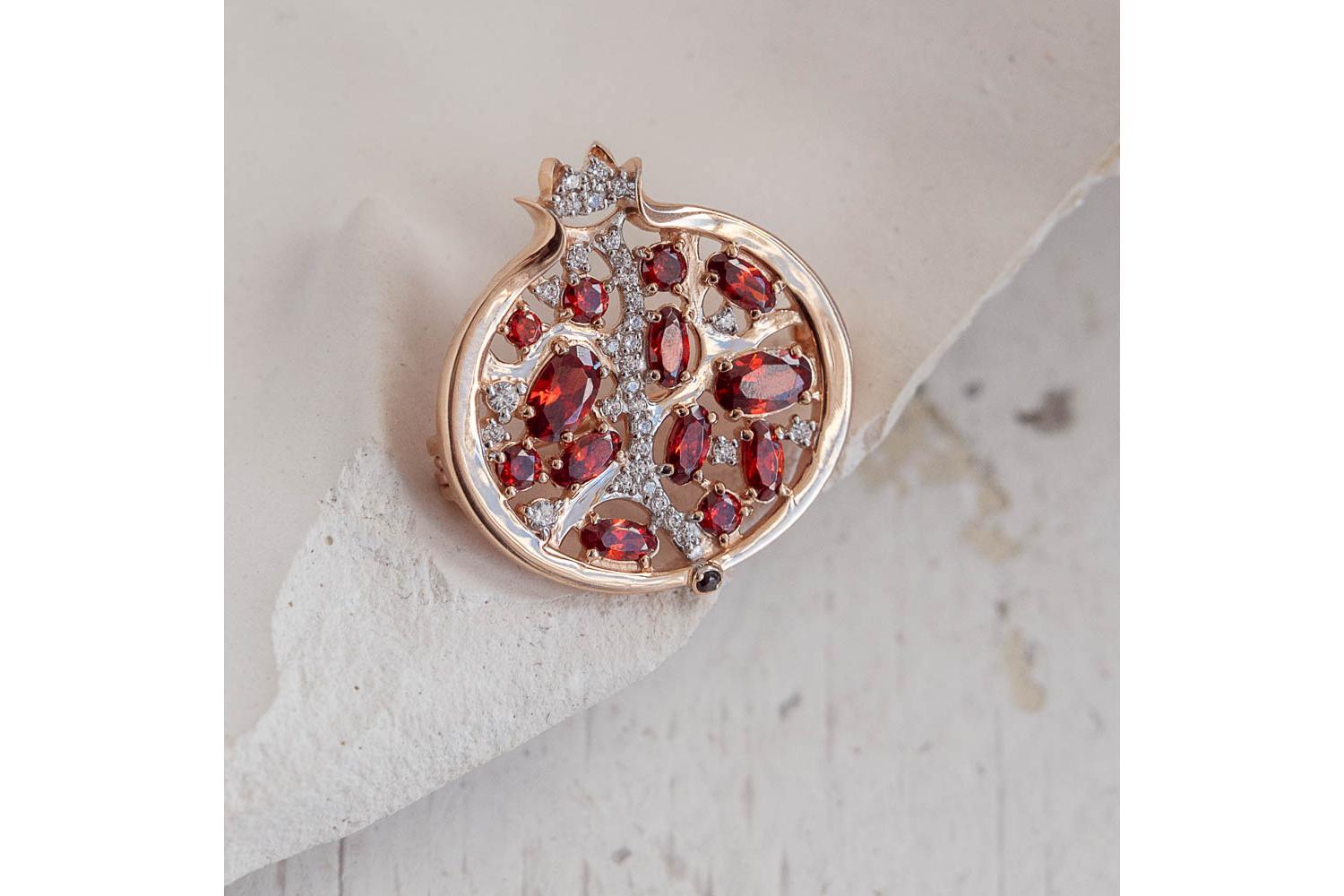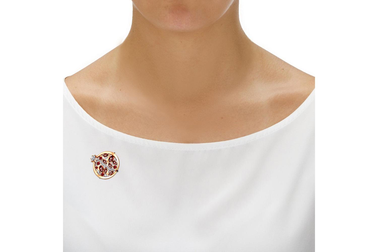 Мастера компании NEWGOLD, приложив всё свое мастерство и искусство, создали для Вас на нашем собственном производстве Брошь Гранат из красного золота с 46 фианитами.