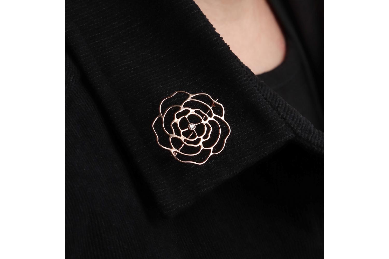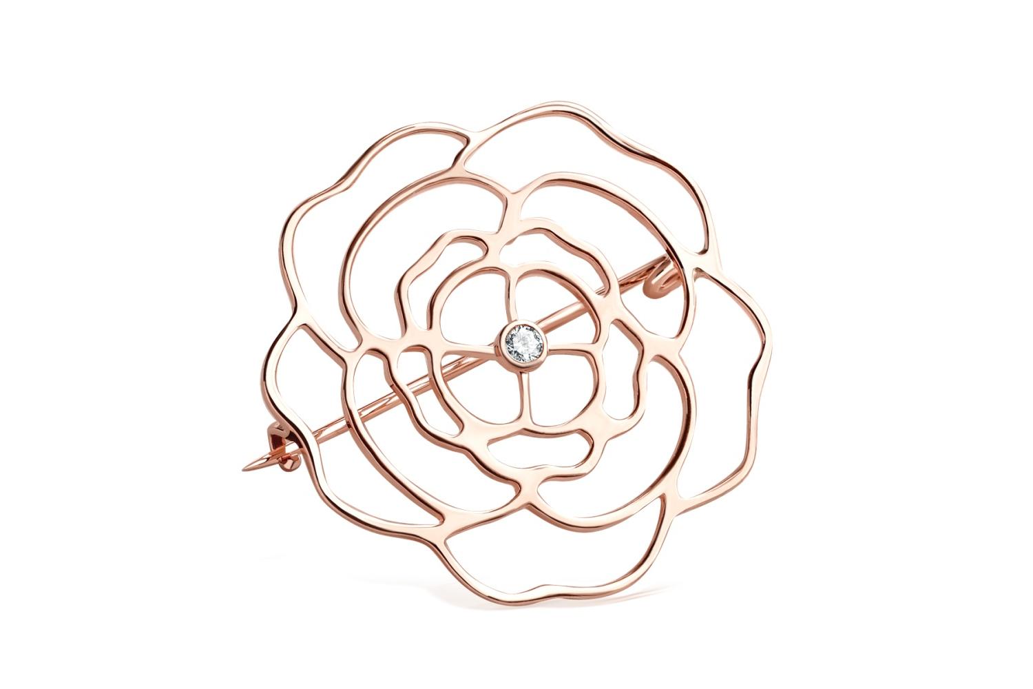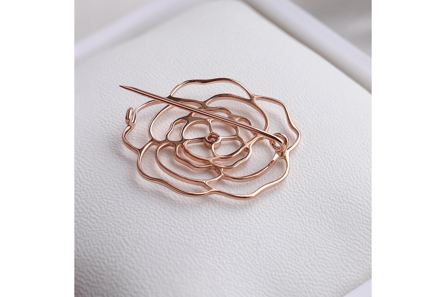 Мастера компании NEWGOLD, приложив всё свое мастерство и искусство, создали для Вас на нашем собственном производстве Брошь Цветок из красного золота с фианитом.