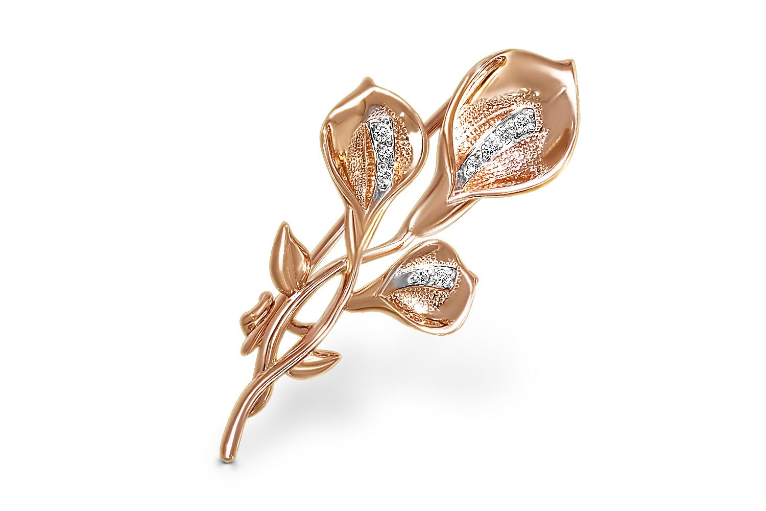 Мастера компании NEWGOLD, приложив всё свое мастерство и искусство, создали для Вас на нашем собственном производстве Брошь Цветок из красного золота с 9 бриллиантами.