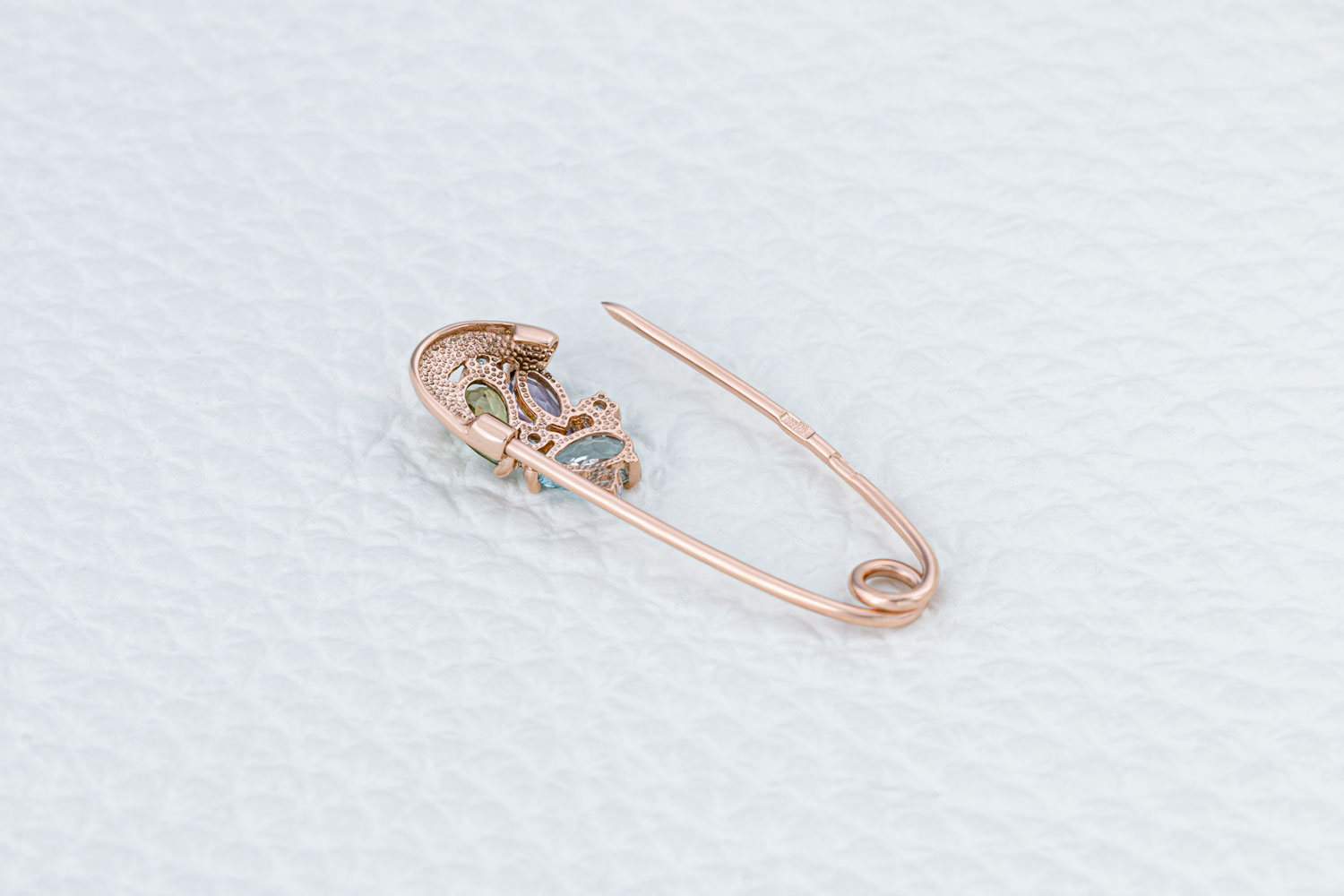 Мастера компании NEWGOLD, приложив всё свое мастерство и искусство, создали для Вас на нашем собственном производстве Булавка из красного золота с хризолитом, фианитами и аметистом.