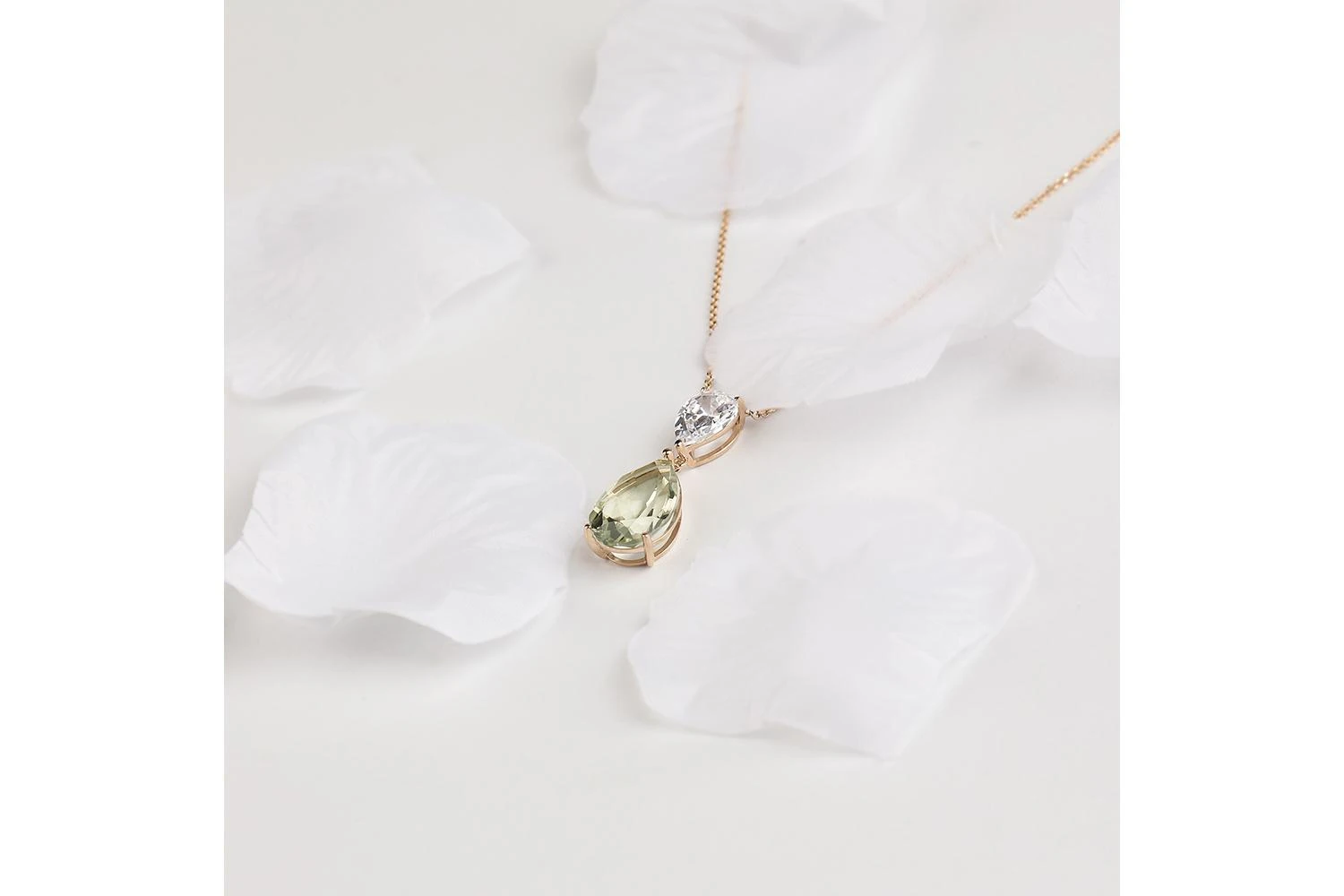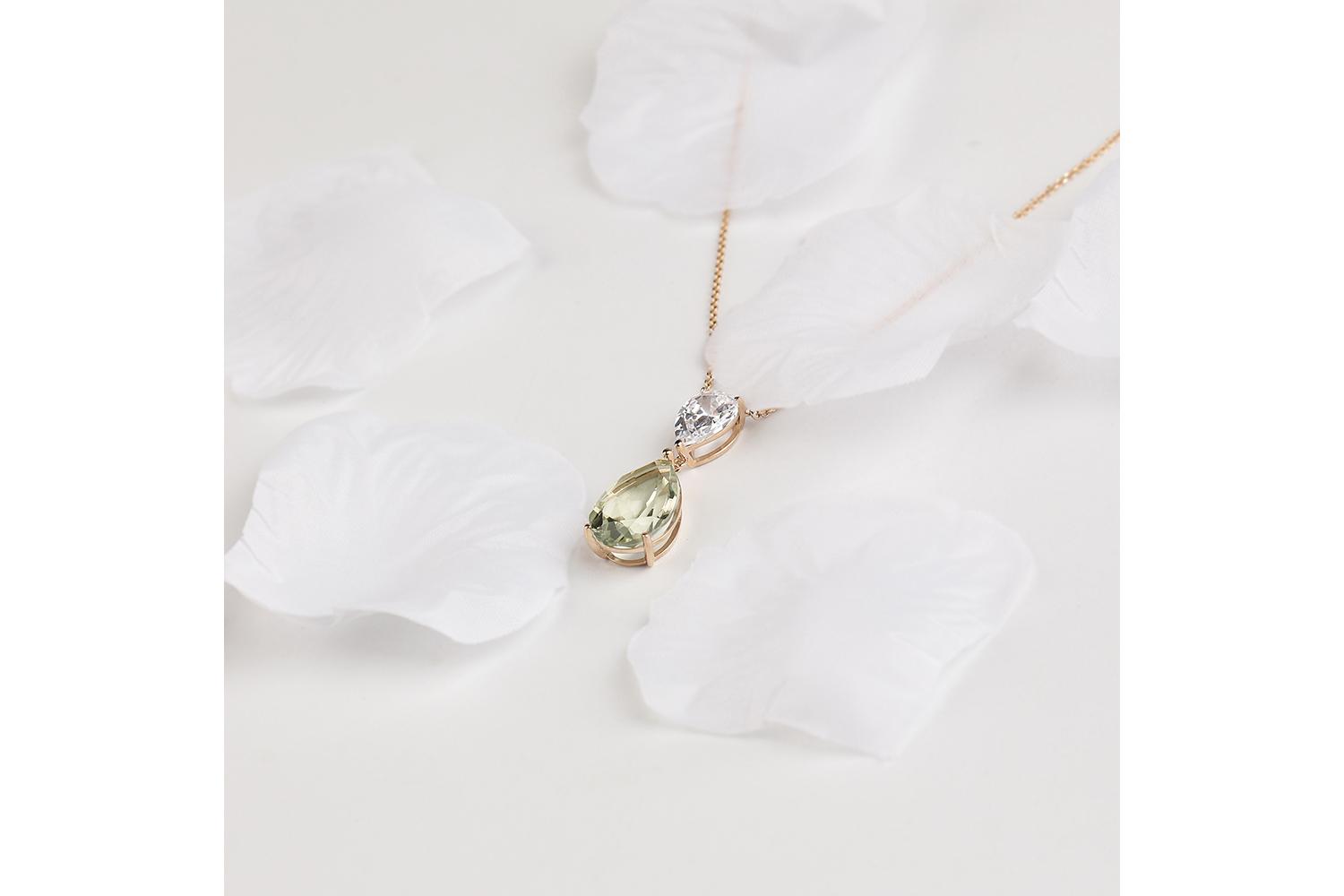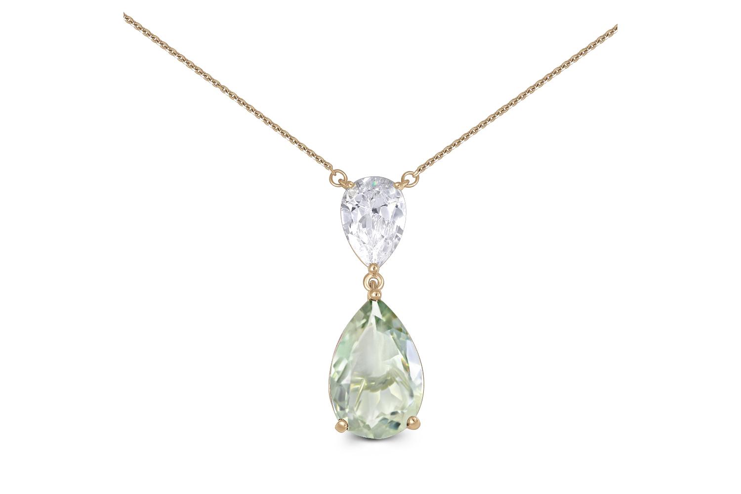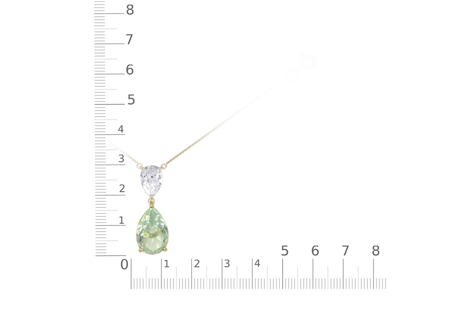 Аметист зеленый натуральный, количество 1 шт., огранка груша, размер 15ˣ10 ; Фианит б/цв, количество 1 шт., огранка груша, размер 10ˣ7