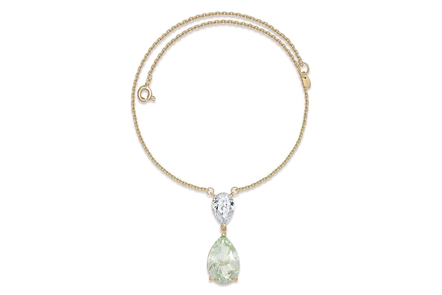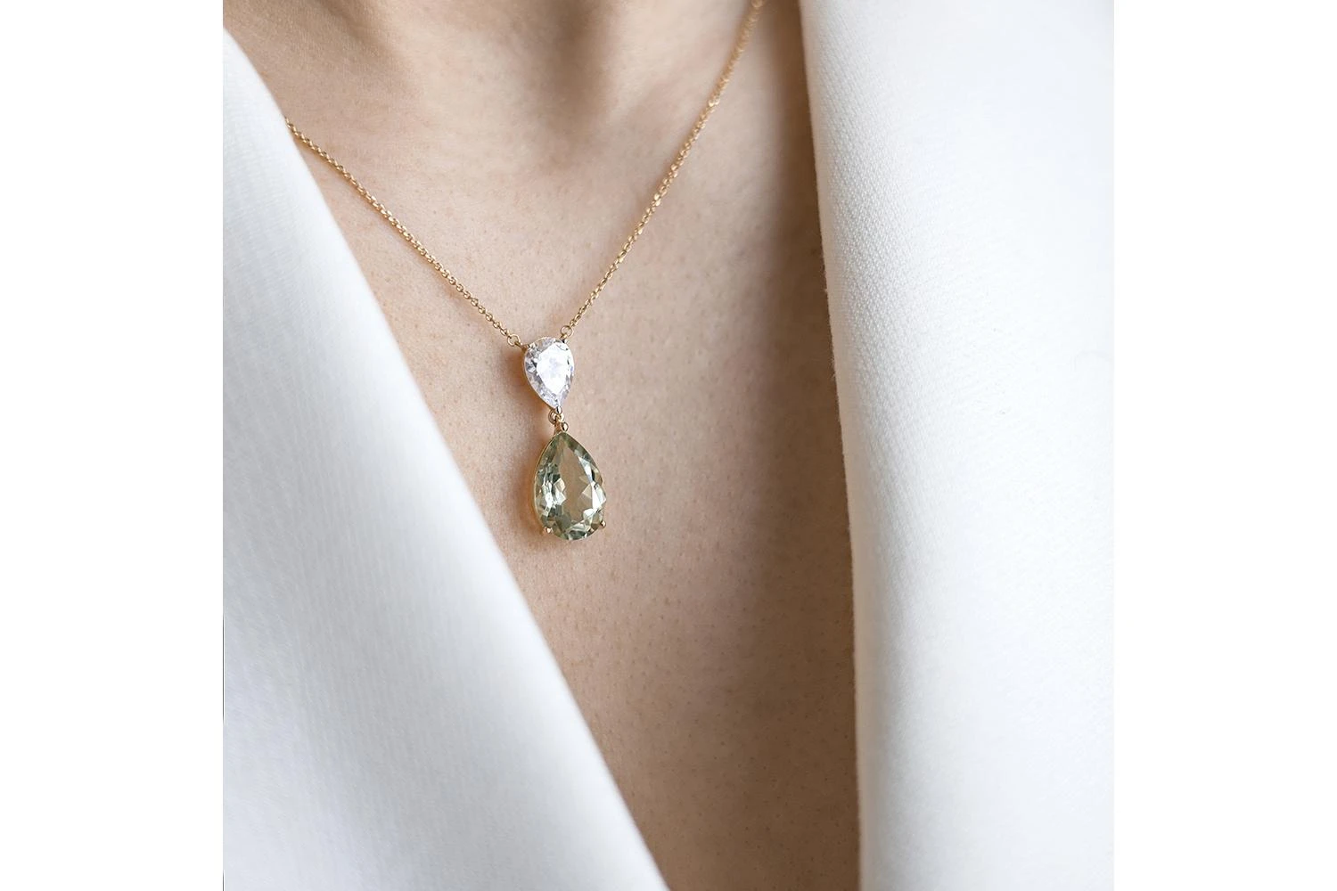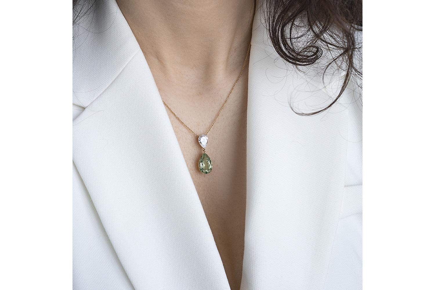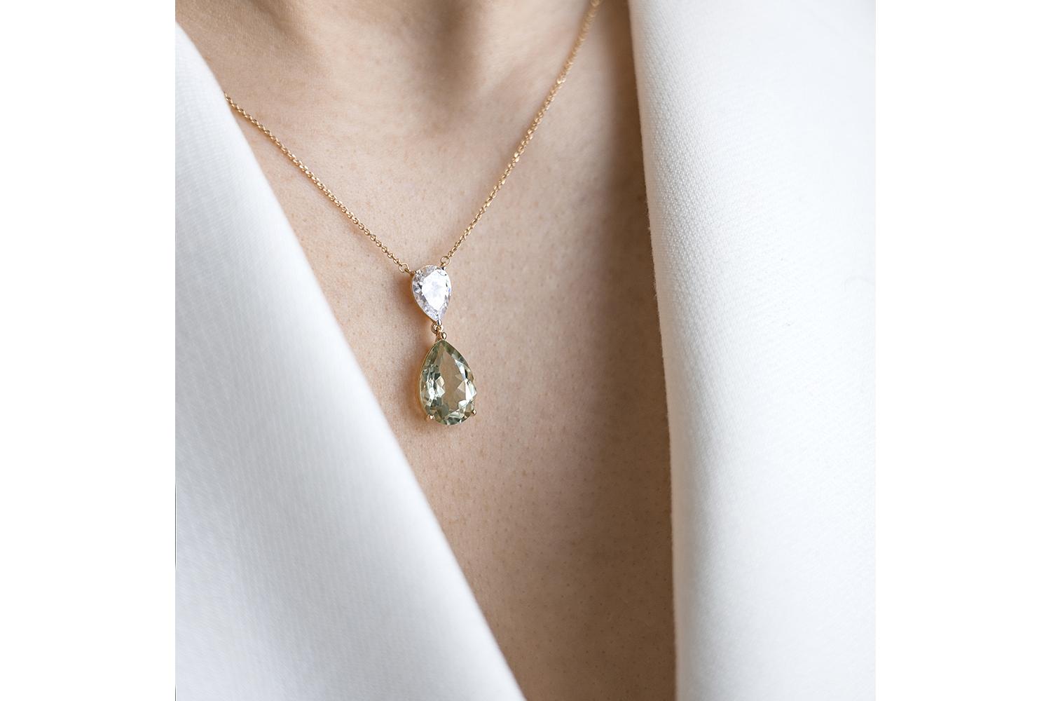 Аметист зеленый натуральный, количество 1 шт., огранка груша, размер 15ˣ10 ; Фианит б/цв, количество 1 шт., огранка груша, размер 10ˣ7