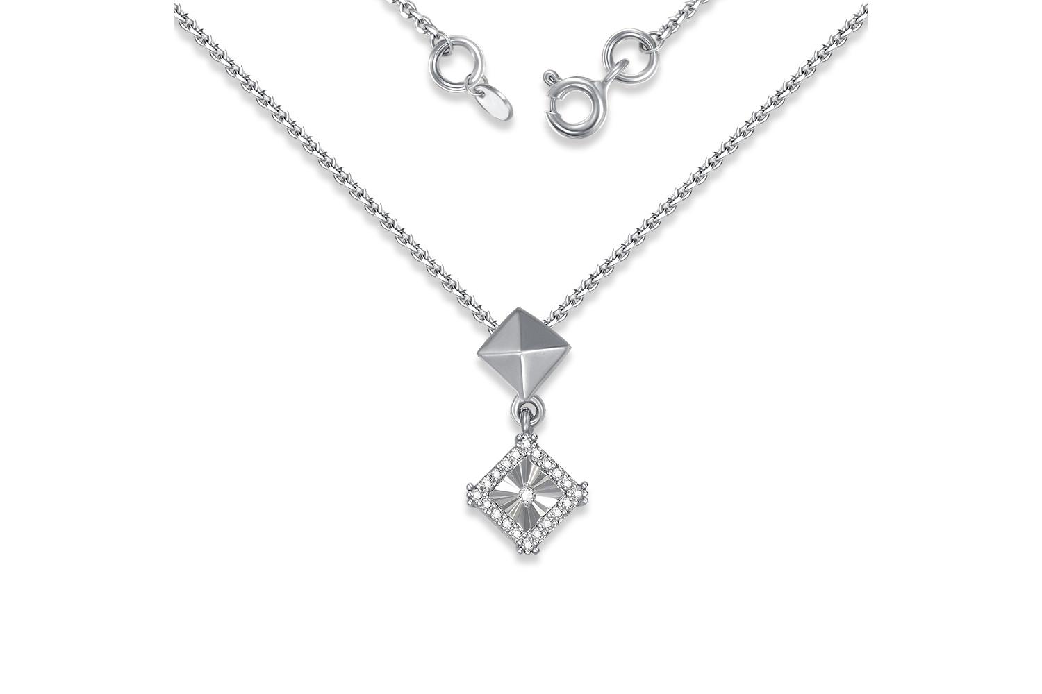 Мастера компании NEWGOLD, приложив всё свое мастерство и искусство, создали для Вас на нашем собственном производстве Колье Квадрат из белого золота с 21 бриллиантами.