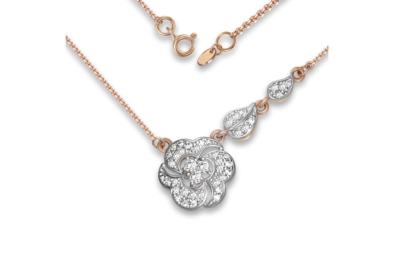 Мастера компании NEWGOLD, приложив всё свое мастерство и искусство, создали для Вас на нашем собственном производстве Колье Цветок из красного золота с 43 фианитами.
