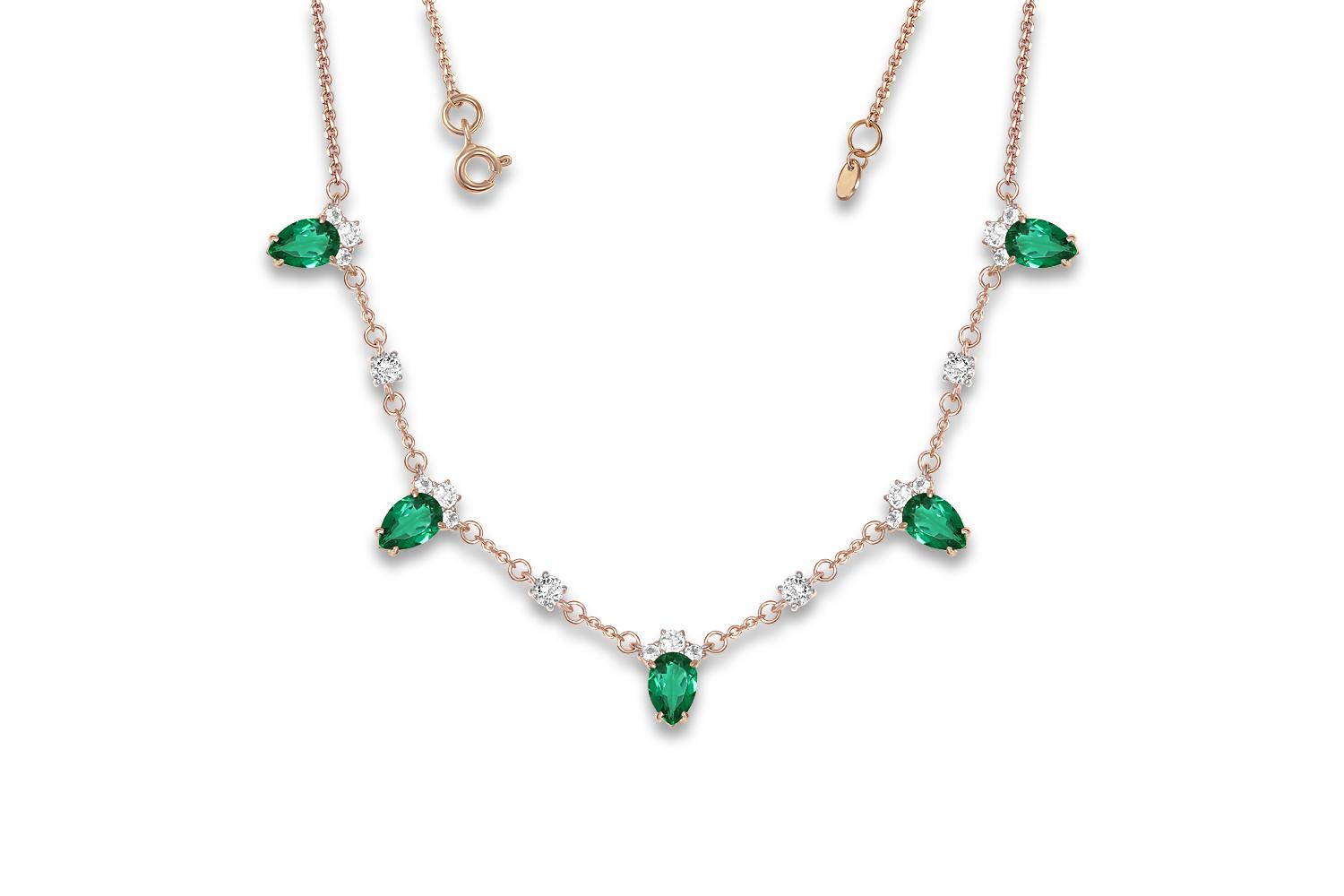 Мастера компании NEWGOLD, приложив всё свое мастерство и искусство, создали для Вас на нашем собственном производстве Колье из красного золота с 5 изумрудами и 19 топазами бесцветными.